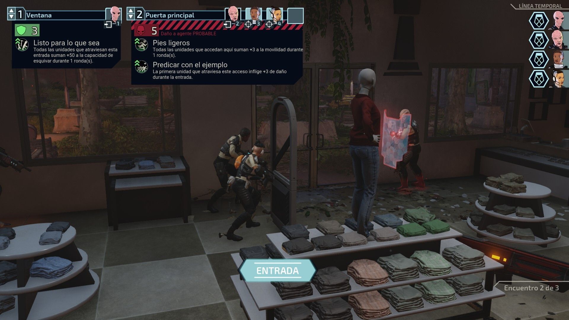 Una de las nuevas mecánicas más evidentes la encontramos en el Modo de Entrada, una especie de "Turno 0" en el que podremos escoger entre diferentes puntos de entrada a una localización concreta. ¿Entraremos a la oficina por la puerta principal o por la cristalera en el techo? ¿Dividiremos a nuestras fuerzas para limpiar una sala desde varios flancos o la mantendremos unida y compacta en un solo bloque?