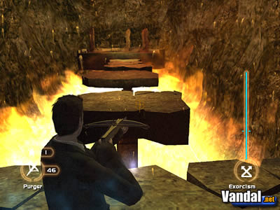 Otro de los poderes de Constantine, el de transportarse de un mundo a otro (del infierno a Los Ángeles), será usado exhaustivamente durante el juego, ya que los desarrolladores (Bits Studios) han implementando un diseño que recuerda a Soul Reaver, donde tendremos que transportarnos a un mundo para seguir avanzando en el otro (solucionando puzzles), y viceversa. No podremos viajar entre mundos al vuelo, sino cuando encontremos unos círculos de agua, lo que limita mucho las posibilidades y, sobre todo, hace que el juego sea mucho más sencillo y lineal. Cada vez que veamos un vial es evidente que no podremos seguir sin viajar al otro mundo, haciendo que la exploración del escenario pierda muchos enteros. Además, los puzzles que tendremos que resolver son por lo general bastante monótonos, siendo por lo común el típico "mueve esta caja" para que este camino se desbloquee en el otro mundo.