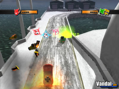Y llega a ser desquiciante el ir todo el rato primero y en el último momento, por un problema de cámara, caer al agua por no haber visto la doblada tan cerrada que nos esperaba a pocos metros. Claro, la solución la podemos encontrar en las frenadas, es decir, cuando veamos que la cámara no nos muestra lo que nos espera a continuación, podemos frenar un poco para que los rivales se acerquen y así ver más circuito, pero entonces nos tocará otra vez sufrir intentando que los enemigos no nos destrocen el coche a base de misilazos. Sin duda, fue uno de los mayores problemas en el juego original, y en esta nueva versión no ha sido corregido del todo. Al igual que tampoco se ha implementado el ansiado juego online, que tanto esperan muchos de los seguidores del original, y que se espera que se implemente en la segunda entrega de la serie que tiene prevista ser lanzada en octubre de este mismo año. Aún así, como habíamos comentado al inicio del análisis, el multijugador que ofrece Mashed sigue siendo de lo más divertido.