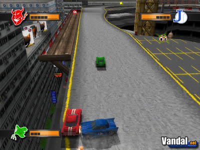 Si morimos, nos convertiremos en un punto de mira y tendremos la oportunidad de lanzar un misil a uno de nuestros rivales, pudiendo fastidiarle la tarde a uno en más de una ocasión. Por eso antes comentábamos la importancia del multijugador en Mashed. Siempre se disfruta más de este tipo de juegos con la compañía de un amigo, pudiendo ver en todo momento la cara que se le queda al adelantarle en la última curva. Por eso, y sabiendo que no todo el mundo tiene la capacidad de reunir cuatro mandos con los que jugar, hubiera sido bastante inteligente por parte de Empire incluir el ansiado modo online en esta versión mejorada. Tanto PS2 como Xbox ya disponen de una buena base de usuarios con la capacidad de disfrutar del juego online, por lo tanto, no hubiera estado de más incluir esta modalidad de juego.