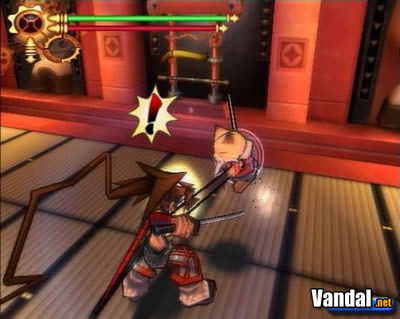Como decíamos, Musashi basa todo el grueso de sus combates en el uso de dos armas, siendo la secundaria (el remo) tan marginal que se pueden contar con los dedos de la mano las veces que habrá que usarla. La principal es una espada de tipo katana, que podremos ir mejorando según avancemos en el juego y que resulta el arma ideal para realizar combos que produzcan grandes niveles de daños en los enemigos. Una técnica esencial es la posibilidad de copiar los ataques de nuestros rivales de manera sencilla. El sistema incluye un sistema de fijado de blancos (como el visto ya en múltiples juegos, desde Ocarina of Time hasta Kingdom Hearts), que es también un sistema de atención que se canaliza a través de una barra que se va incrementando con cierta velocidad. Cuando esta barra es azul, significa que ese enemigo tiene una habilidad que podemos copiar, y cuando éste nos ataque tendremos que pulsar con precisión y rapidez el botón cuadrado del mando. Éste es el factor de mayor estrategia de todo el juego.