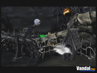 Hemos comentado que viajaremos por la ciudad de Halloween, lo cual nos lleva al apartado gráfico, que sin ser ninguna maravilla cumple con creces su cometido ya que prácticamente todo cuanto pudimos ver en la película se encuentra perfectamente recreado en el juego; ya sean edificios, escenarios o personajes. No solo Jack ha sido plasmado con total exactitud sino también el resto de habitantes como el Dr. Finkelstein, Sally o Zero. Cabe decir que no todo es perfecto, los enemigos no son extremadamente variados ya que salvo en contadas ocasiones se componen principalmente de calaveras, que aunque varían de color y de tamaño, son prácticamente iguales.