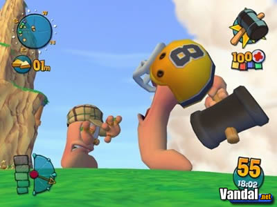 Pero lo que se lleva la palma en la configuración es el sistema de creación de armas personalizadas. Cada equipo podrá tener una de éstas, que estará disponible al cabo de cierto número de turnos, y el sistema de creación nos deja muchas opciones. Podremos elegir si es un arma de proyectil, de lanzar o de ataque aéreo, y dentro de estas categorías podremos distribuir una serie de puntos en el alcance, la precisión (podremos hacerlas teledirigidas o por control remoto) y, por supuesto, en el daño. Como si de un juego de rol se tratase. También podremos elegir cómo será el arma, pudiendo escoger entre una amplia variedad de objetos de la más diversa índole, incluyendo como es de esperar animales explosivos. La parte negativa es que solo tendremos un uso de este arma por partido.