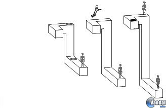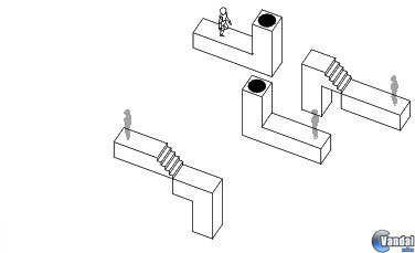 Dicho de otro modo: jugamos con la perspectiva para crear la ilusión visual de que no existe ese abismo, y nuestro personaje podrá moverse superándolo. Los primeros escenarios van a requerir alguna rotación, pero cuando avancemos un poco los cambios van a ser constantes, teniendo que jugar de manera continuada con la cámara, siendo ágiles, precisos, para poder alcanzar la meta. Y todo ello de manera sencilla: la profundidad, las 3D, se rinden ante lo que vemos, y el efecto óptico triunfa ante la emulación de cuerpos sólidos en una pantalla que, como tal, es bidimensional.