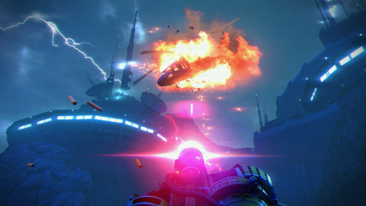 Hay que admitir que si resolver todo el contenido secundario es simplemente entretenido, con algún que otro momento monótono o incluso poco repetitivo, la historia principal se disfruta de principio a fin, es terriblemente divertida. Hacía mucho que no nos reíamos tanto con un juego, todo esto mientras pegamos mil y un tiros en espectaculares escenas de acción, a cada cual más loca y sorprendente. Los chascarrillos que suelta el protagonista, el excéntrico comportamiento de los personajes secundarios, la estúpida y tópica historia, en definitiva es genial cómo se ríe y a la vez homenajea a los años 80, e incluso también aprovecha para parodiar algún cliché de los videojuegos actuales.