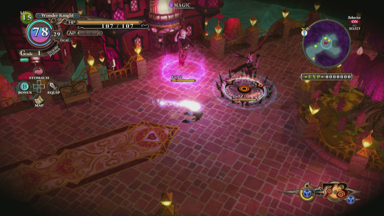 Existe un sistema de clases intercambiables que modifican el aspecto de Hundred Knight y sus parámetros, y una limitación a nuestro avance debido al consumo de calorías. Básicamente se trata de alimentar el estómago con objetos o devorando enemigos pequeños mediante un minijuego de QTE –aunque esta opción deja restos en nuestro estómago, ocupando un espacio valioso del inventario-, y es necesario porque a medida que actuamos baja nuestra energía, y una vez consumida, afecta a la salud. Como idea para limitar el rango de exploración a aquellos que no buscan los suficientes recursos o evitan los combates tienen cierto sentido, pero también entorpece un poco la diversión y no funciona tan bien como se esperaría. ¿Qué sentido hay si cada vez que salimos del mapa y volvemos a la última columna recuperamos todas nuestras calorías? La estrategia es tan simple como pasar por las pertinentes pantallas de carga y sin esfuerzo estaremos otra vez listos para la acción. Algo parece roto en esta mecánica.
