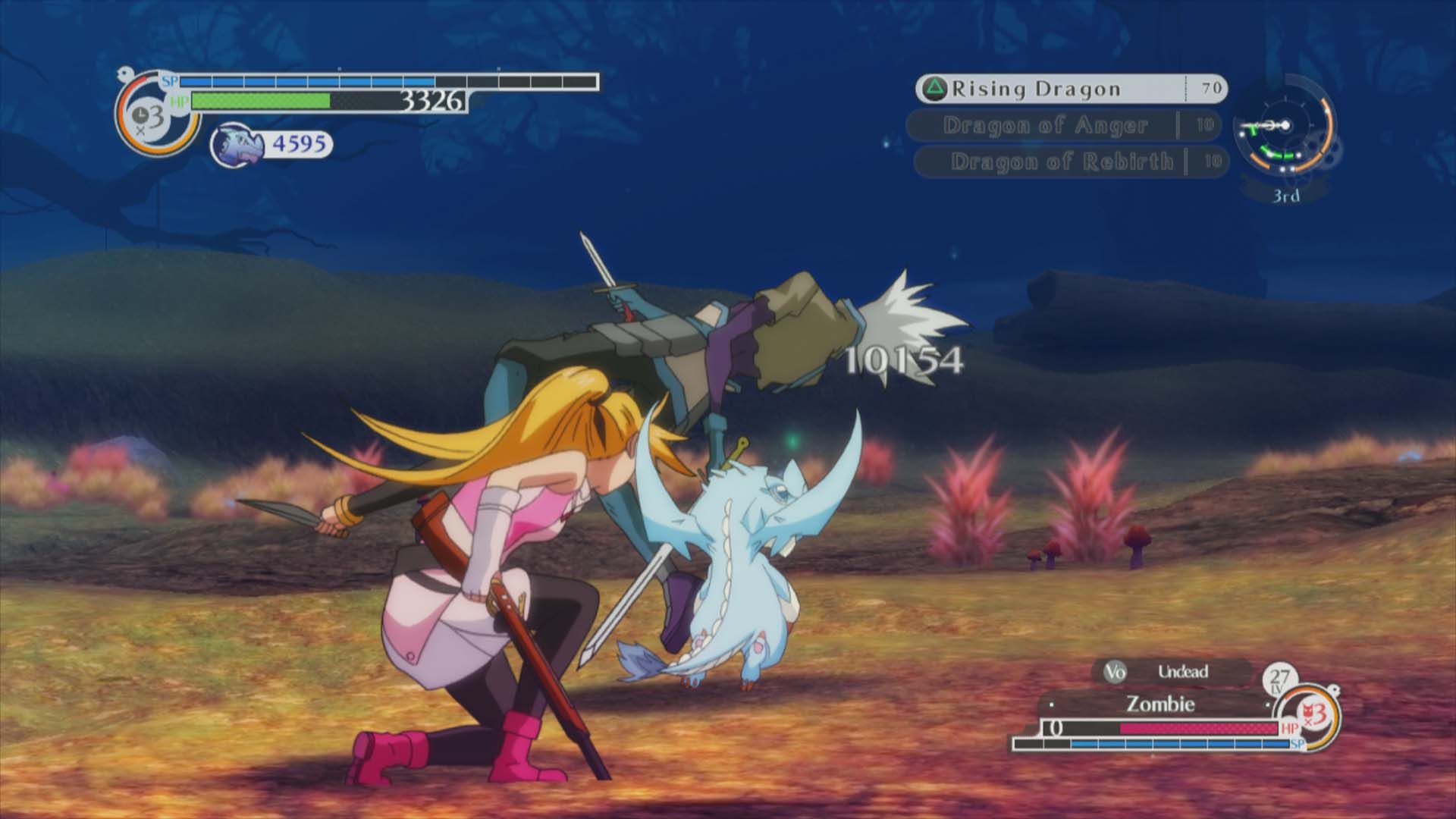 Los combates recuerdan a otro juego de la compañía, Black Rock Shooter The Game. Con la misma cámara trasera que en el juego de PSP vemos al oponente a la distancia, que nos ataca desde lejos o a corta distancia, y nuestra tarea es esquivar el peligro con pasos laterales o utilizando la posición de defensiva –que reduce el daño-. Nosotros igualmente podemos utilizar ataques a larga distancia o saltar hacia el rival para golpes cuerpo a cuerpo, realizar combos o romper la barrera del enemigo. Existe una barra de habilidades especiales que nos permitirá realizar otro tipo de movimientos que asociamos a cada botón, disponemos de objetos para utilizar y Drake –el dragoncito que nos acompaña- nos ayuda atacando ocasionalmente o curando nuestra salud.