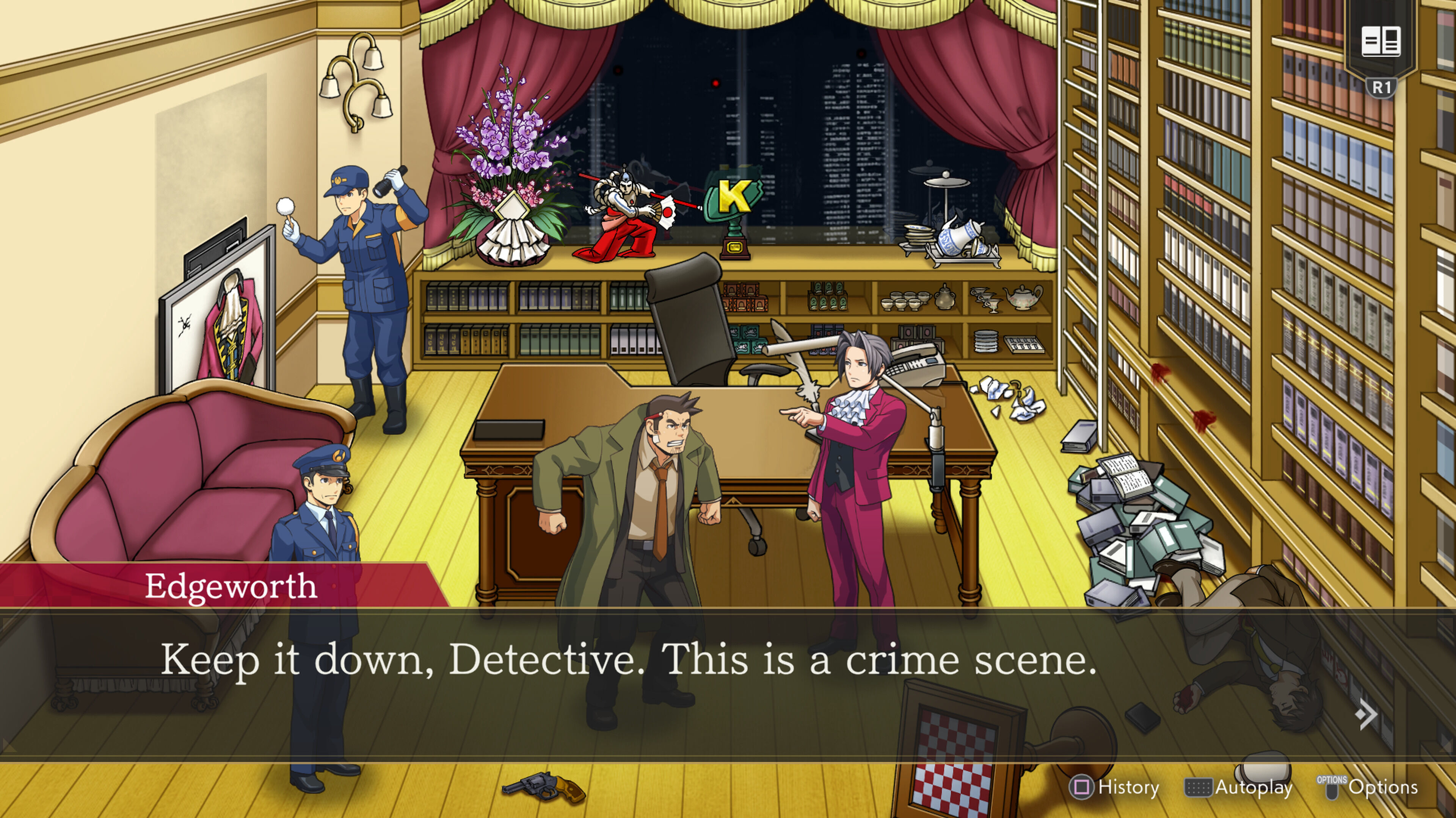 Con Ace Attorney Investigations: Miles Edgeworth, que fue analizado en su momento –y os recomendamos una lectura para profundizar en él-, Miles cobraba protagonismo en compañía de algunos veteranos de la saga, como Dick Gumshoe o Franziska von Karma. No se centra tanto en los tribunales sino en la investigación, lo que daba lugar a la observación de las escenas del crimen –al estilo de una aventura gráfica-, primero recogiendo pruebas o extrayendo información en conversaciones, y luego conectando estas pistas para llegar a una conclusión que demuestre las contradicciones en cada declaración.