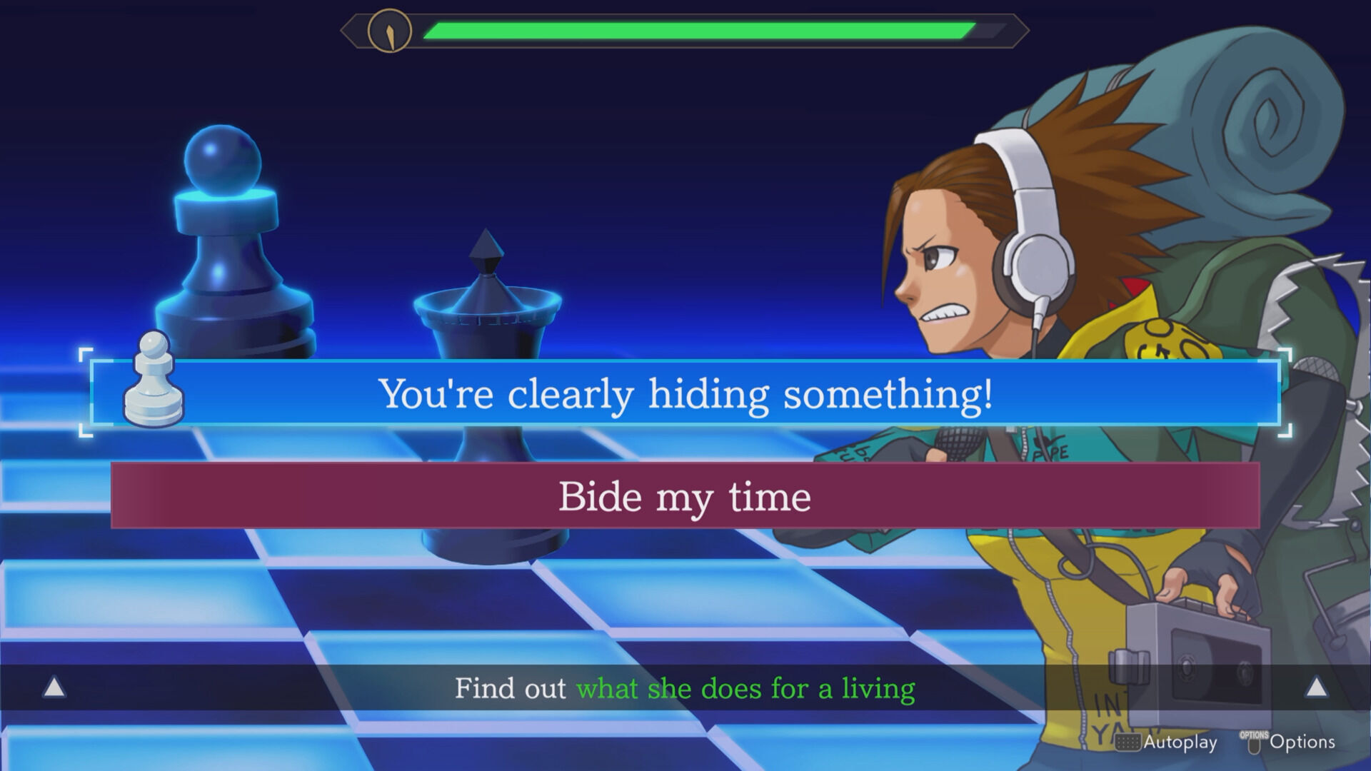 Además del modo de juego tradicional, disponemos del modo historia. Esto elimina el desafío porque realiza las selecciones de diálogos y resuelve los puzles automáticamente, convirtiendo la aventura en una novela visual prácticamente sin interacción. Por supuesto es opcional y seguro que hay quien prefiere disfrutar de las historias sin necesidad de dar vueltas a cada misterio, pero advertimos que hay algunos trofeos/logros internos que no se obtienen por esta vía. En la parte de comodidad, se guarda un registro de todos los diálogos para echar la vista a la conversación, útil si hemos perdido alguna línea importante.