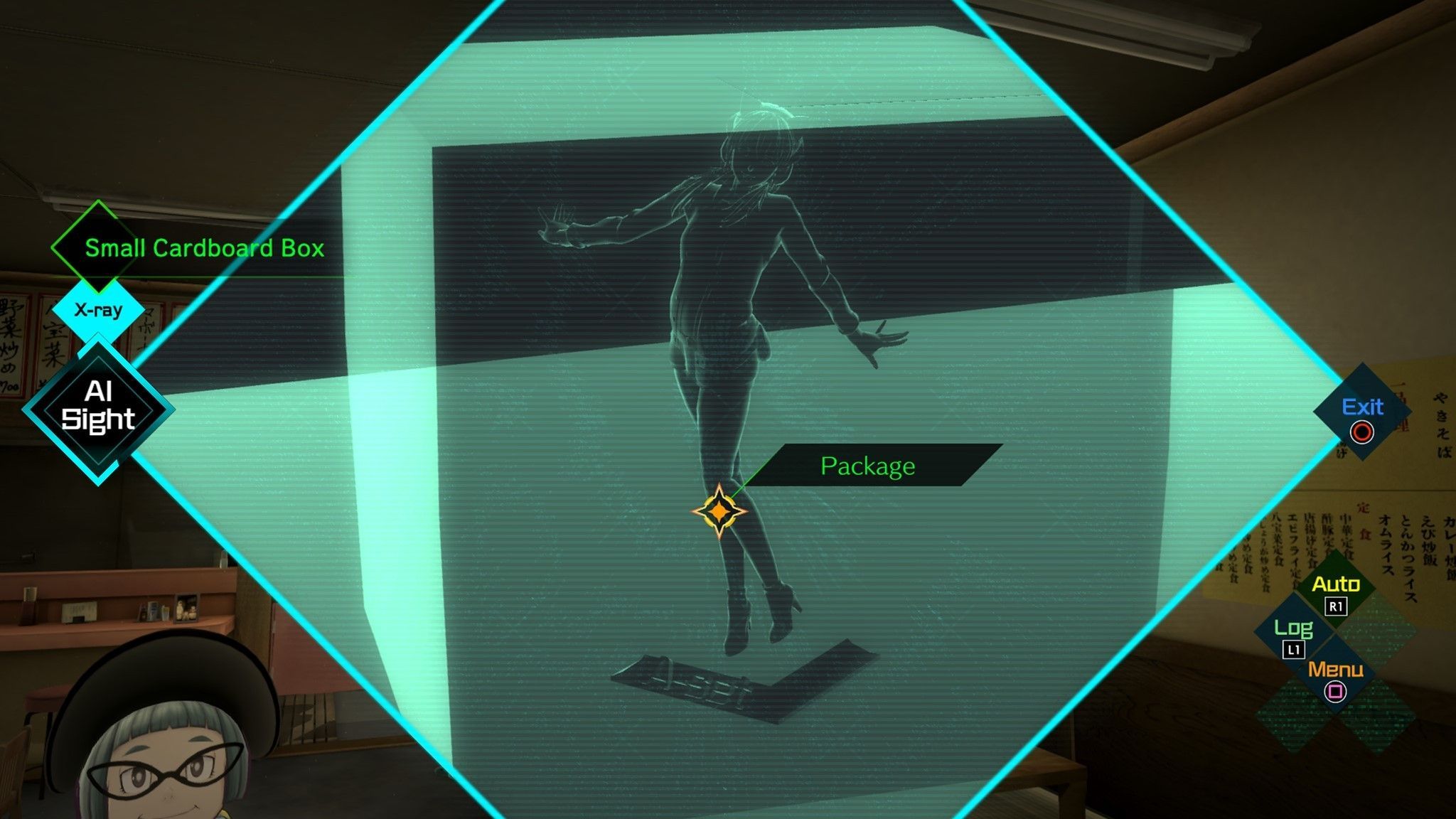 El cursor nos muestra una serie de acciones y diálogos que podemos iniciar para conocer más de la situación o una nueva pista de la que tirar, pero como decimos, el juego prácticamente nos va dictando lo que hacer. Si hay una caja que podría esconder algo, basta con seleccionarla, escuchar el consejo de Aiba para usar la visión especial y descubrir su interior.