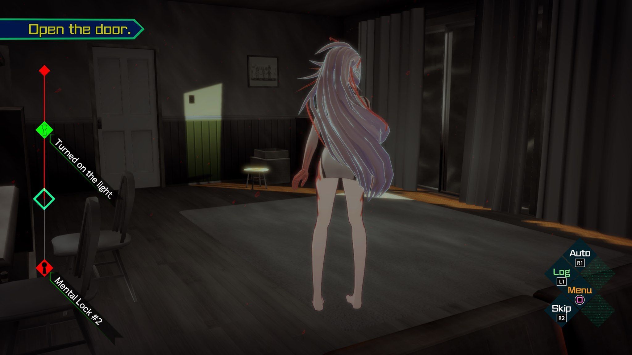 Pero esta es sólo una de las mecánicas en AI: The Somnium Files, junto con las escenas de acción mediante QTE o la presentación de pruebas. Sin duda el otro bloque a destacar es el que tiene de protagonista a la tecnología que permite a Aiba explorar el subconsciente de las personas, mundos un poco surrealistas que se rigen por sus propias reglas, no siempre lógicas. Estas fases si son más interactivas y explorables, y en la primera que vamos a experimentar nuestra protagonista –una representación de Aiba, la inteligencia artificial- no puede interactuar con los objetos de la habitación a menos que estén iluminados.