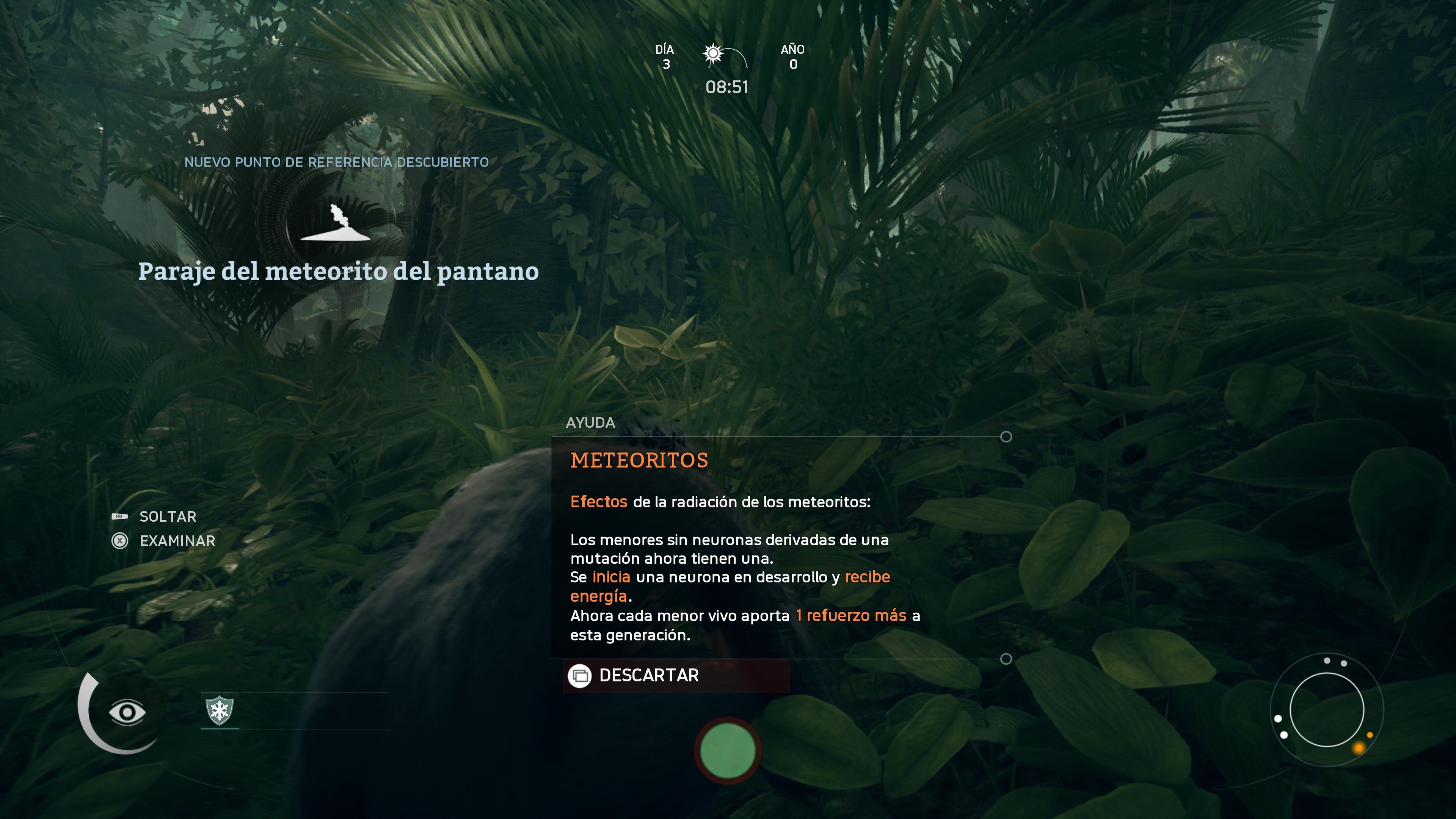 No nos vamos a quejar de todos los cambios ni mucho menos. Hay ciertos tutoriales que sí nos parecen totalmente necesarios porque su ausencia daba una opacidad exagerada al juego, y además se ha incluido varias mejoras de esas que llamamos "de calidad de vida": ahora podemos saltar las escenas cinemáticas; antes pasábamos varios minutos mirando atónitos el mismo vídeo una y otra vez cuando teníamos que procrear varias veces seguidas. La interfaz, que sigue pudiendo desactivarse para tener una experiencia más realista, también se ha mejorado en ciertos detalles, como permitir saber si el mono que estás mirando es tu pareja sin necesidad de entrar a un menú.
