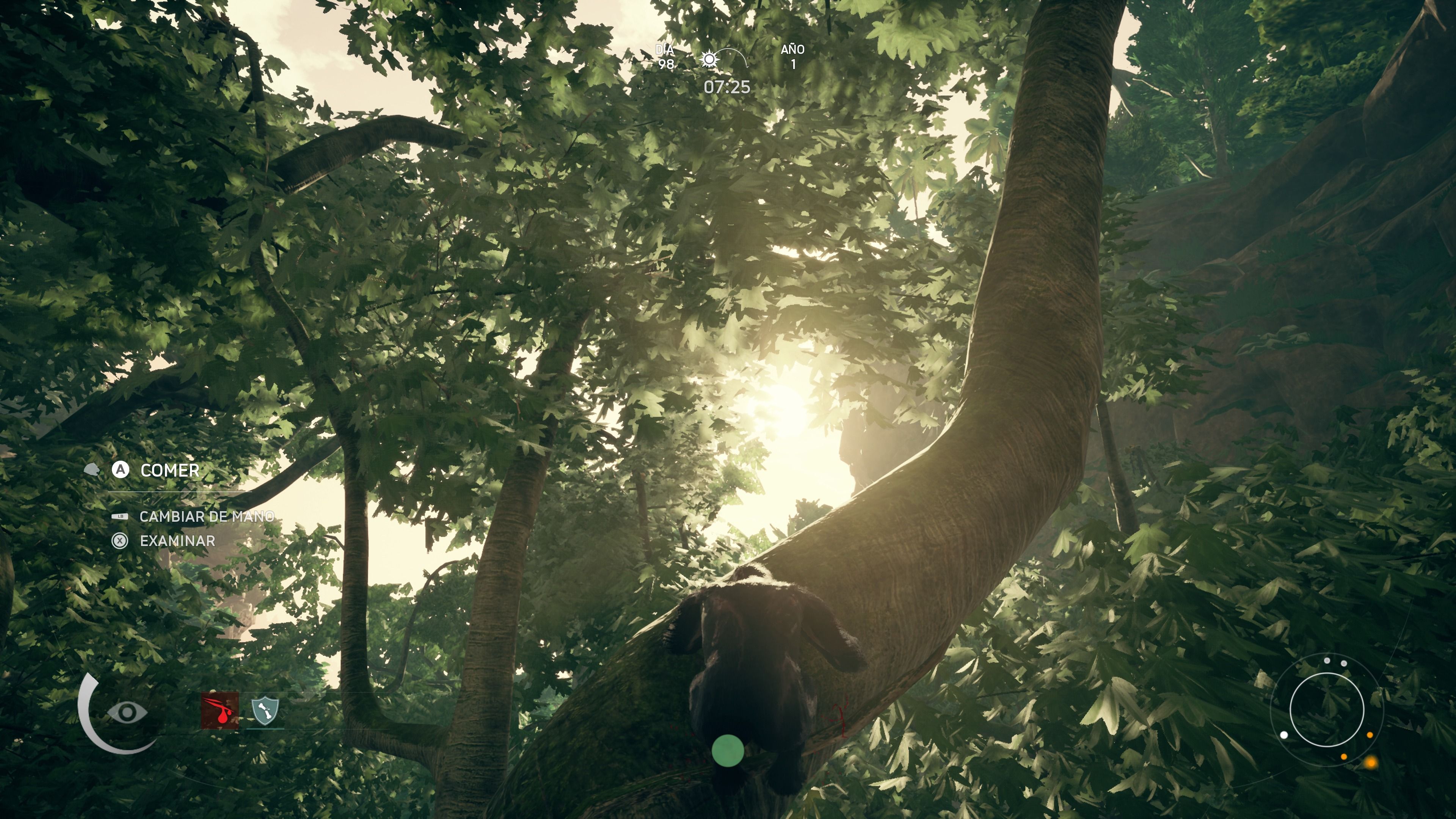 Precisamente esas animaciones son una de las cosas que nos hubiera gustado ver mejoradas (aunque sí hay nuevas cinemáticas cuando un animal acaba con uno de nuestros simios), al igual que los habituales problemas de cámara: es complicado saber dónde saltar cuando la cámara está demasiado pegada a nuestro mono, una enredadera translúcida nos tapa la visión y bajo nuestros pies hay un abismo que nos depara la muerte. Pero lo que más incomprensible nos parece es que, al menos en Xbox One X, el juego no tenga HDR. A pesar de que no es juego punto en lo técnico, en las varias decenas de horas que jugamos en PC nos dejó boquiabiertos con ciertos paisajes y efectos lumínicos producidos por la luz natural, algo que esperábamos que nos sorprendiera más aún gracias a un HDR que, lamentablemente, no existe.