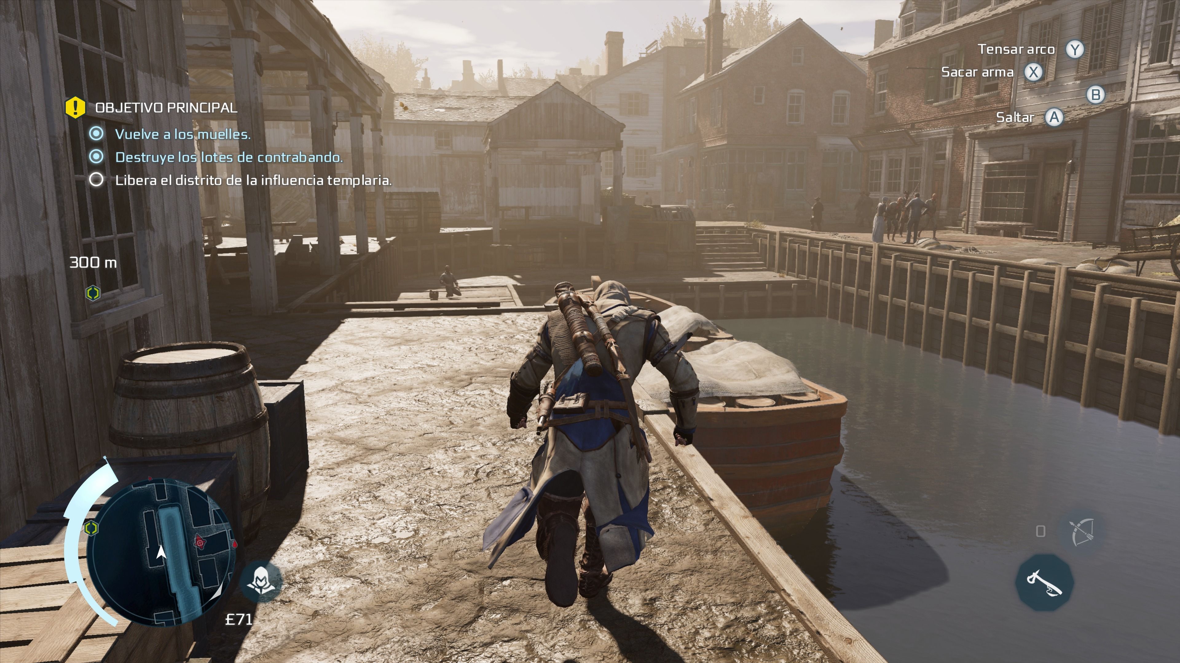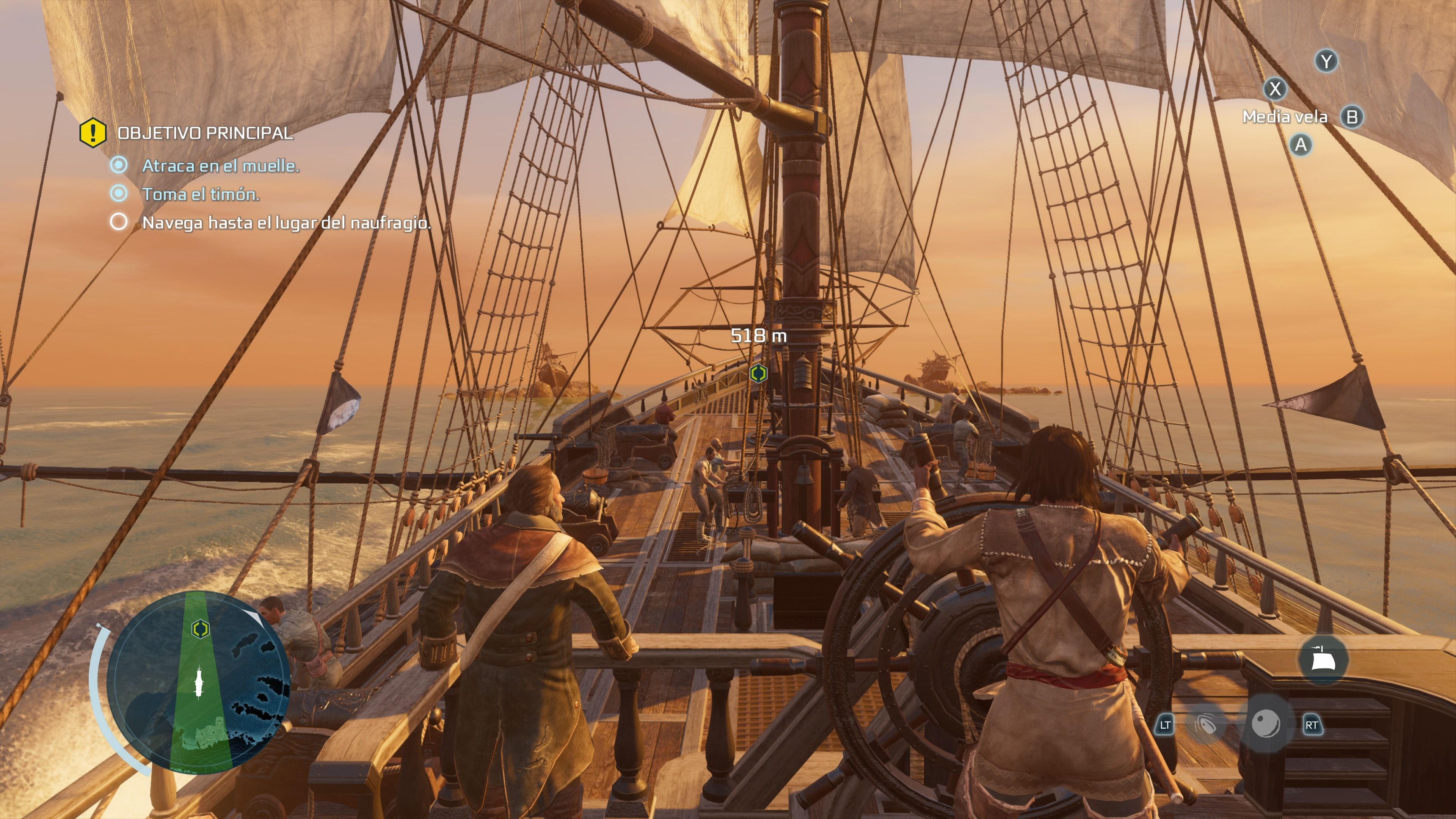 Como veis, no son mejoras radicales ni cambios muy importantes, pero ayudan a hacer la experiencia jugable más agradable, y se agradece que se hayan tomado el esfuerzo. Otras partes como el parkour y la movilidad no se han retocado, pero funciona razonablemente bien, y donde sí podían haber metido mano quizás es en la parte del barco, que introdujeron en esta entrega de manera muy rudimentaria, demostrando todo su potencia al año siguiente en Black Flag.