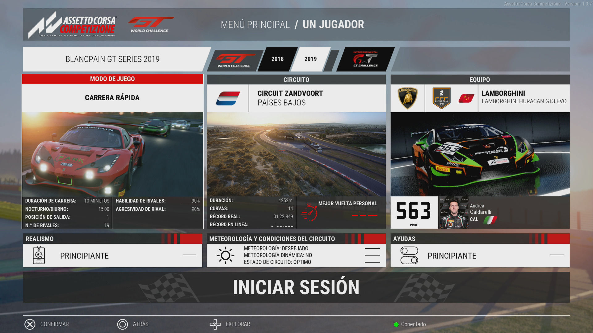 Ahora bien, en cuanto a modos sigue siendo demasiado previsible y basa su gran atractivo en la GT Series, demasiado nicho para el gran público de la conducción. Para un jugador tenemos práctica, vuelta rápida, Hotstint, carrera rápida, eventos especiales y el modo campeonato con las temporadas Blancpain 2018, 2019 y, en venta por separado, Intercontinental GT Challenge -con cuatro circuitos más-; es posible decidir si se juega en las mismas condiciones climáticas que los torneos de 2018 y 2019, y cubrir el campeonato completo con la opción de guardado de la partida.