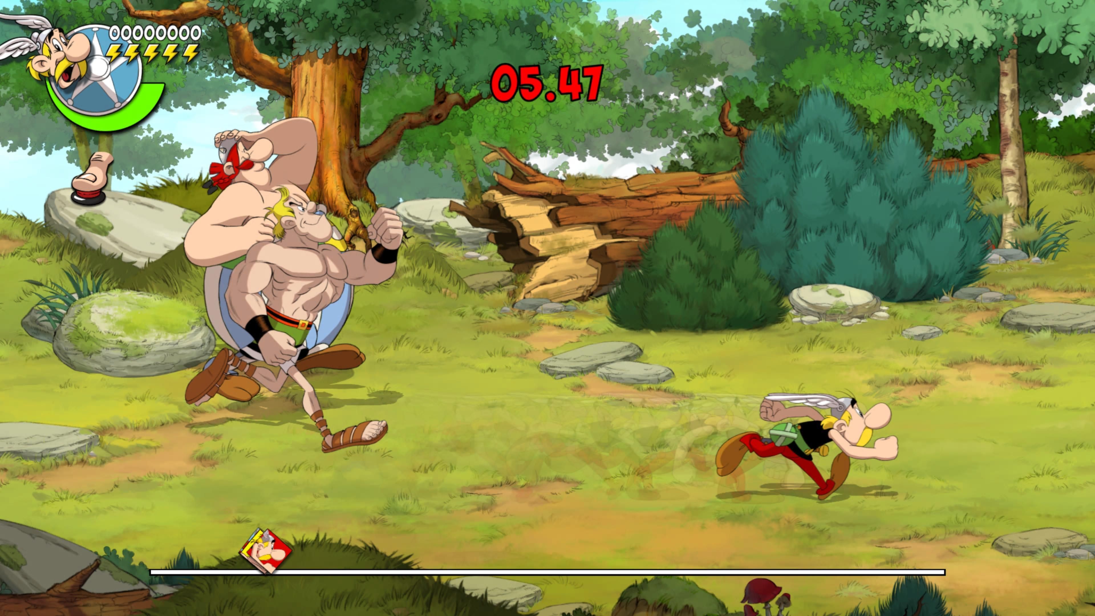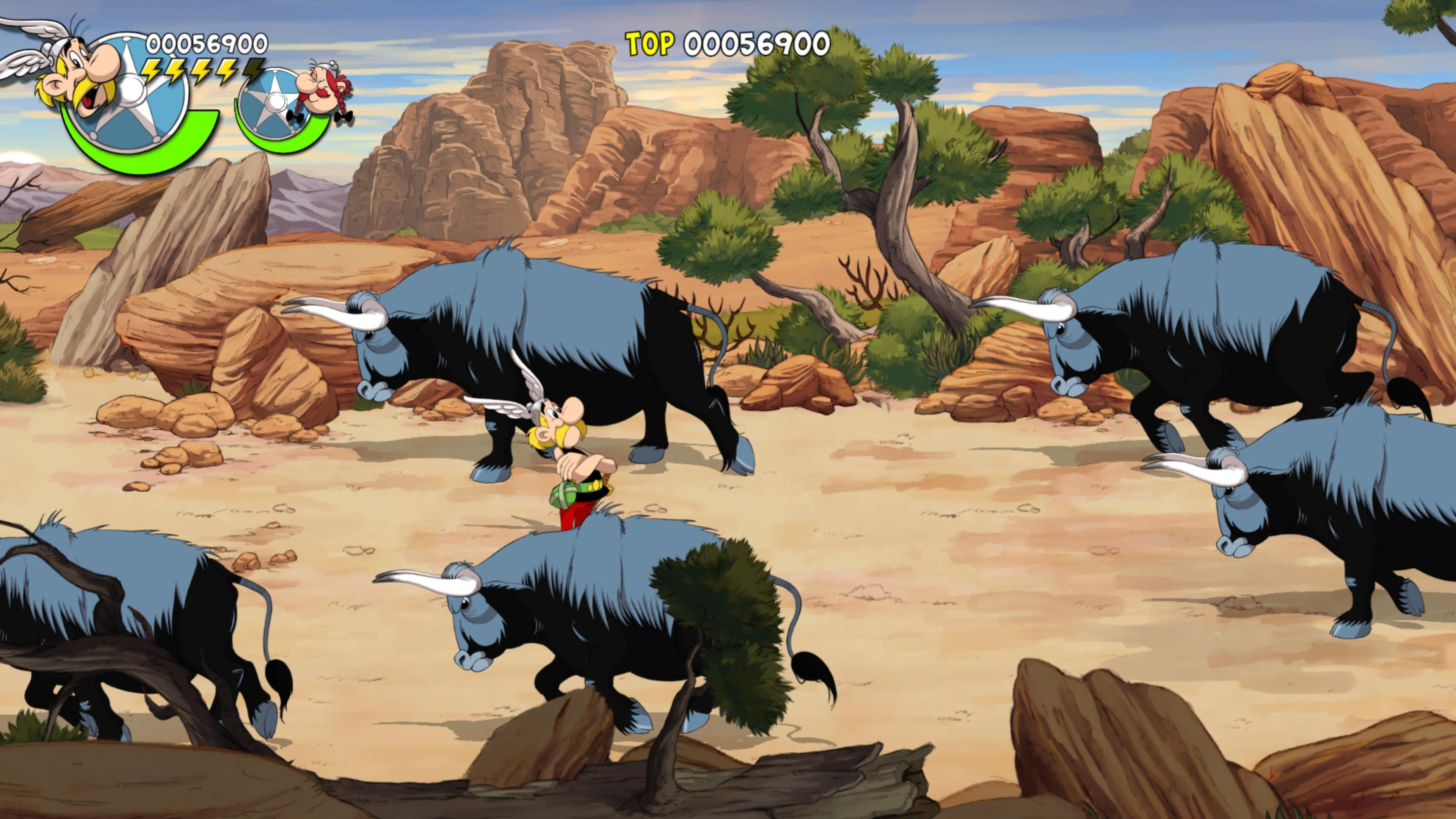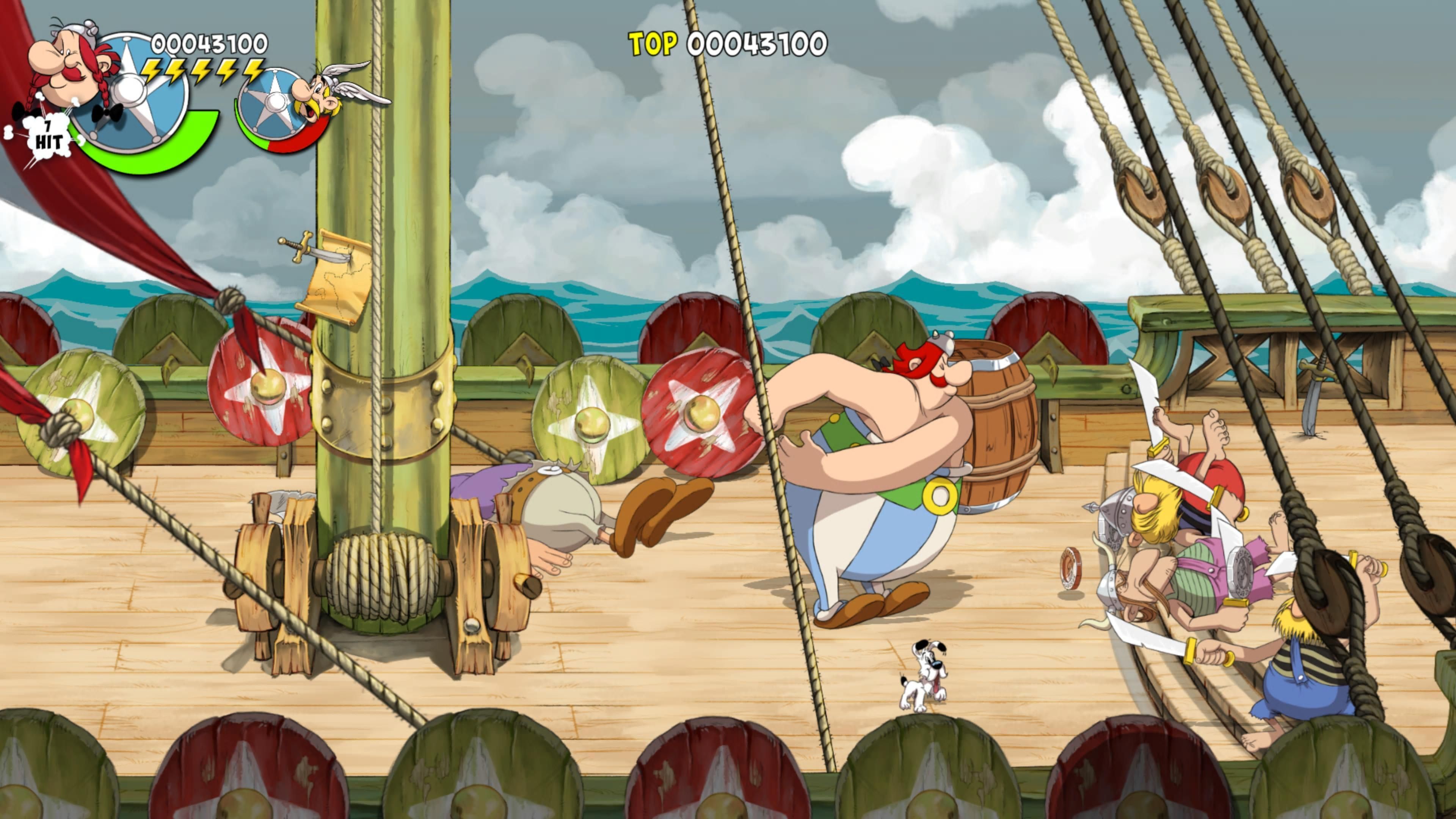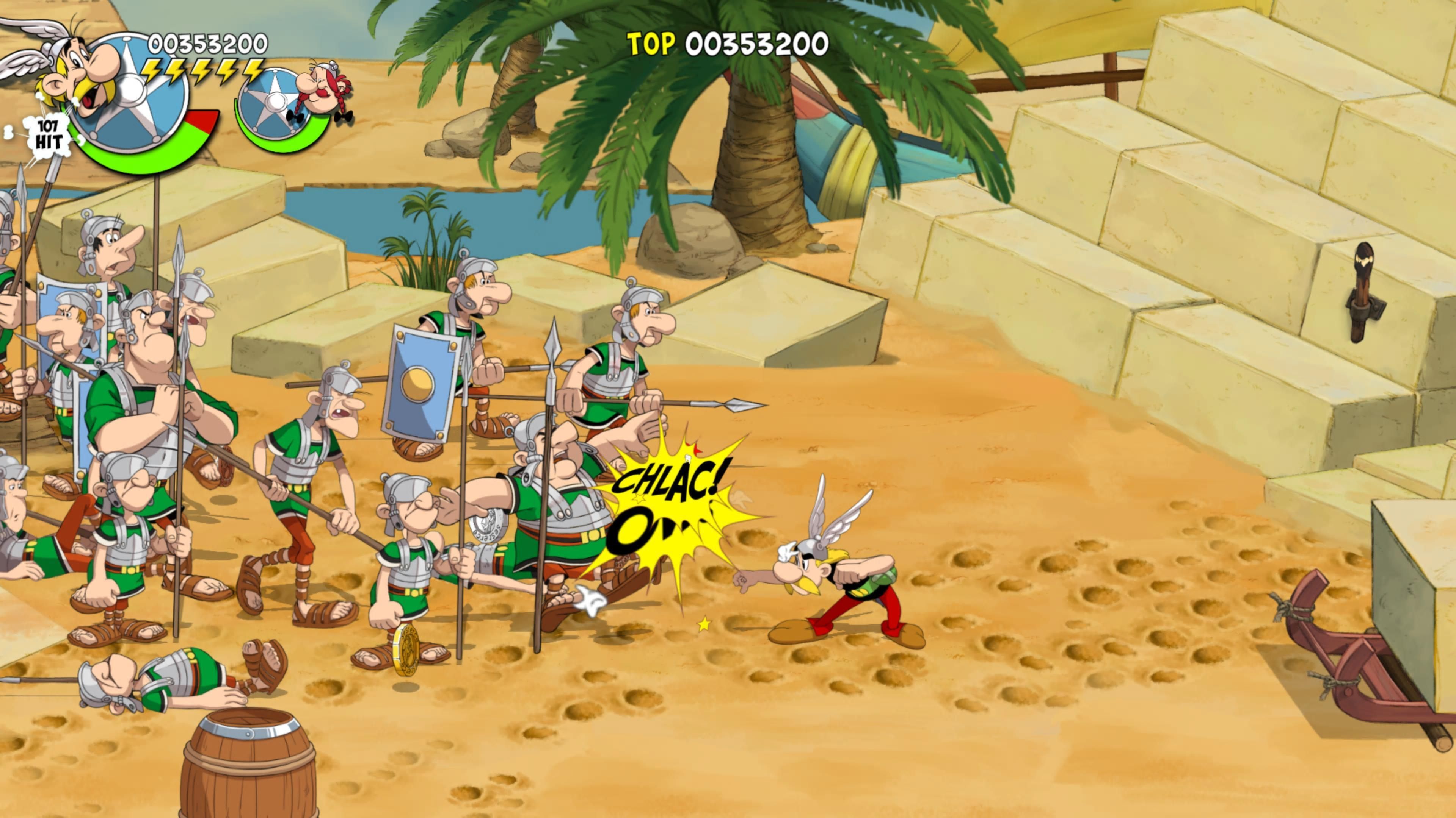 Una vez en faena, nuestro objetivo será el de avanzar por una serie de fases completamente lineales mientras nos pegamos con innumerables romanos, bandidos y piratas. Los controles son extremadamente simples y aunque hay diferencias entre ambos galos, todo se resume en un combo básico, un esprint, un botón de ataque especial con algunas variantes según la dirección que pulsemos, la posibilidad de agarrar enemigos para usarlos como armas y un salto que permite un par de golpes aéreos.