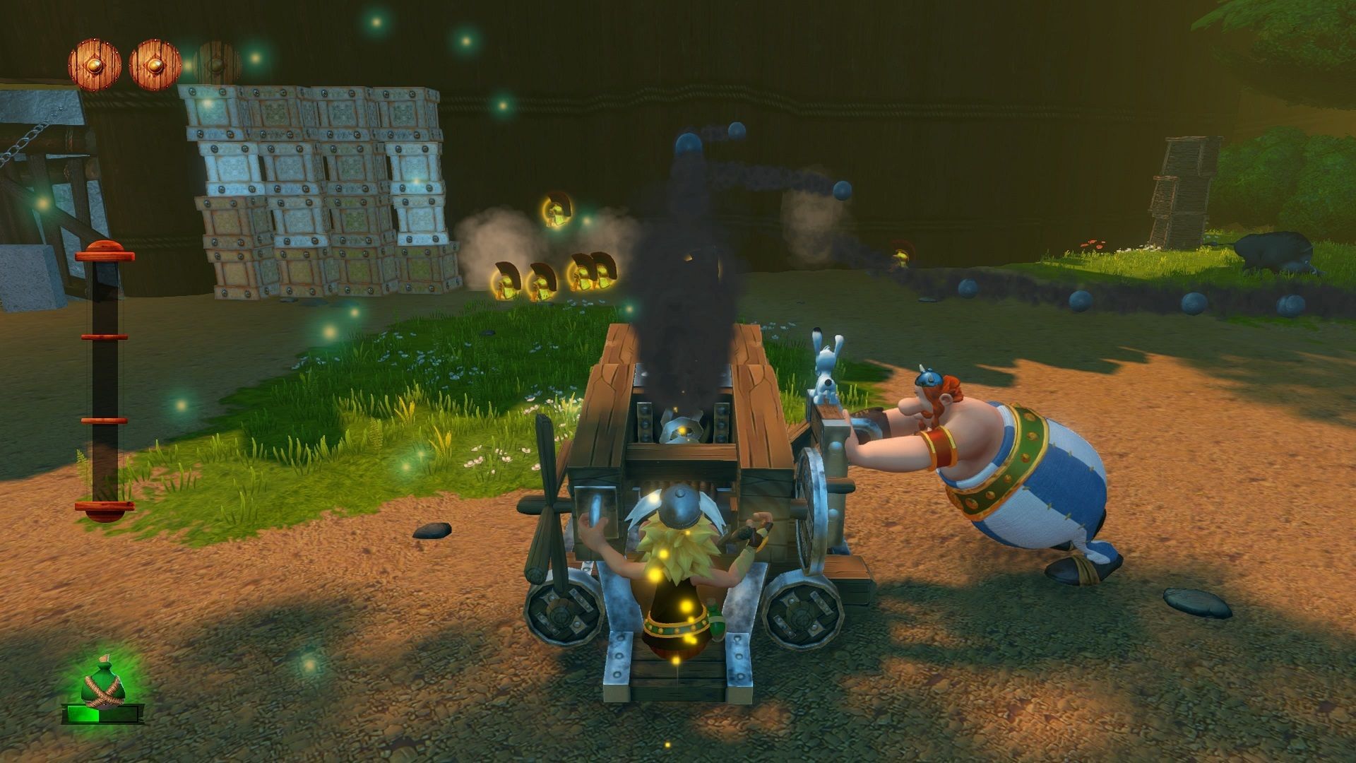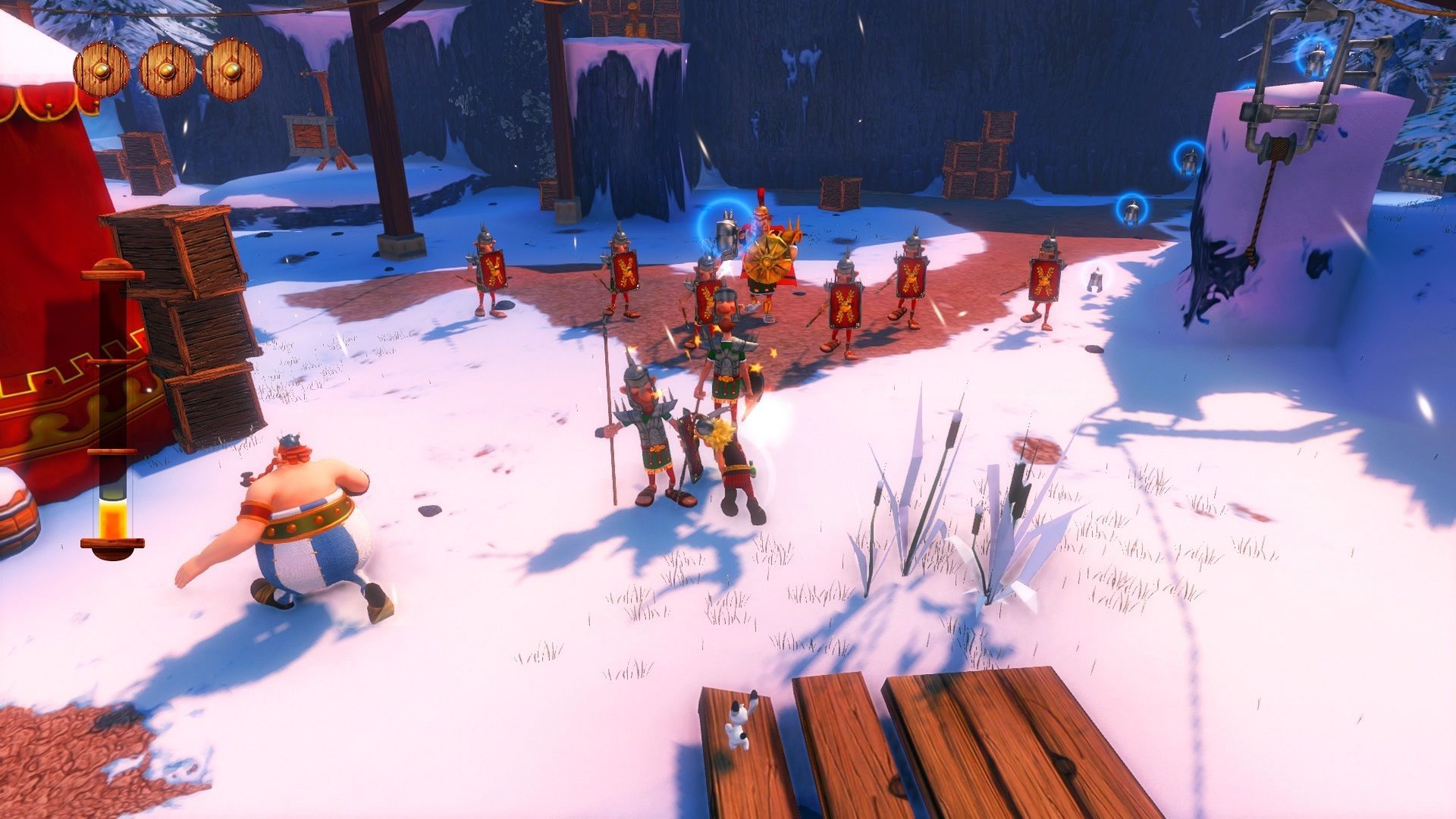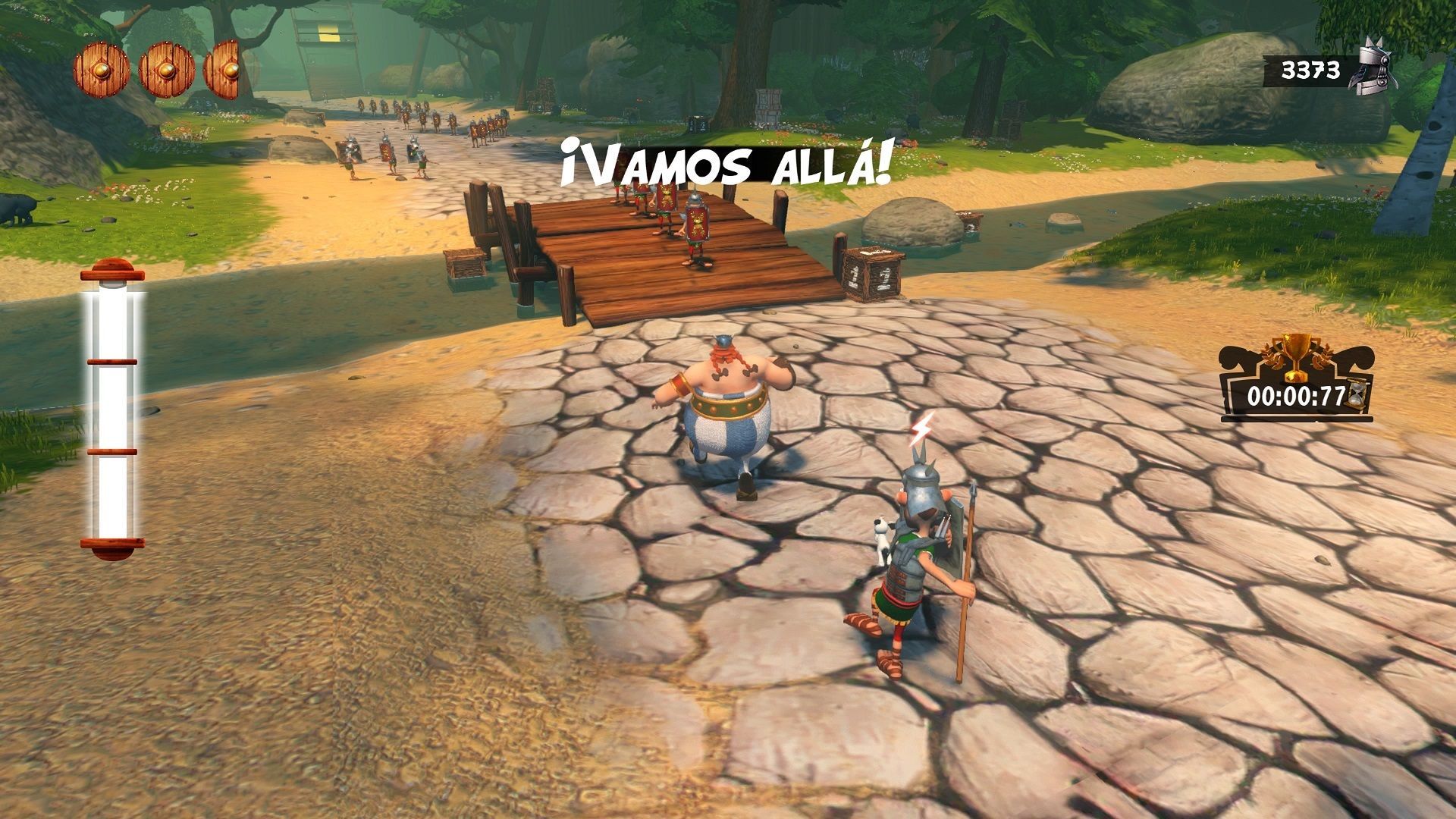 La disposición jugable es la que cualquier seguidor de este género se sabe de memoria. Controlando a los dos personajes (se alterna su control a lo largo de la aventura), quienes poseen algunas habilidades únicas que es necesario emplear en lugares determinados para poder avanzar, tenemos que explorar los distintos decorados mientras recopilamos todo tipo de objetos coleccionables, siendo los laureles dorados los más significativos en este caso. Pero campear por los fondos no es tan sencillo y plácido dado que por ellos merodean infinidad de rivales, desde los clásicos soldados romanos a vikingos y demás tipos diferentes de enemigos, los cuales varían en función de la zona o localización que visitamos. De hecho, las batallas y los combates acaban siendo un ingrediente primordial en la aventura, pudiendo incluso emplear algunas armas determinadas… o, también, la famosa pócima potenciadora que convierte a Astérix (a Obélix no le hace falta como todos sabéis) en una bestia parda durante unos instantes.
