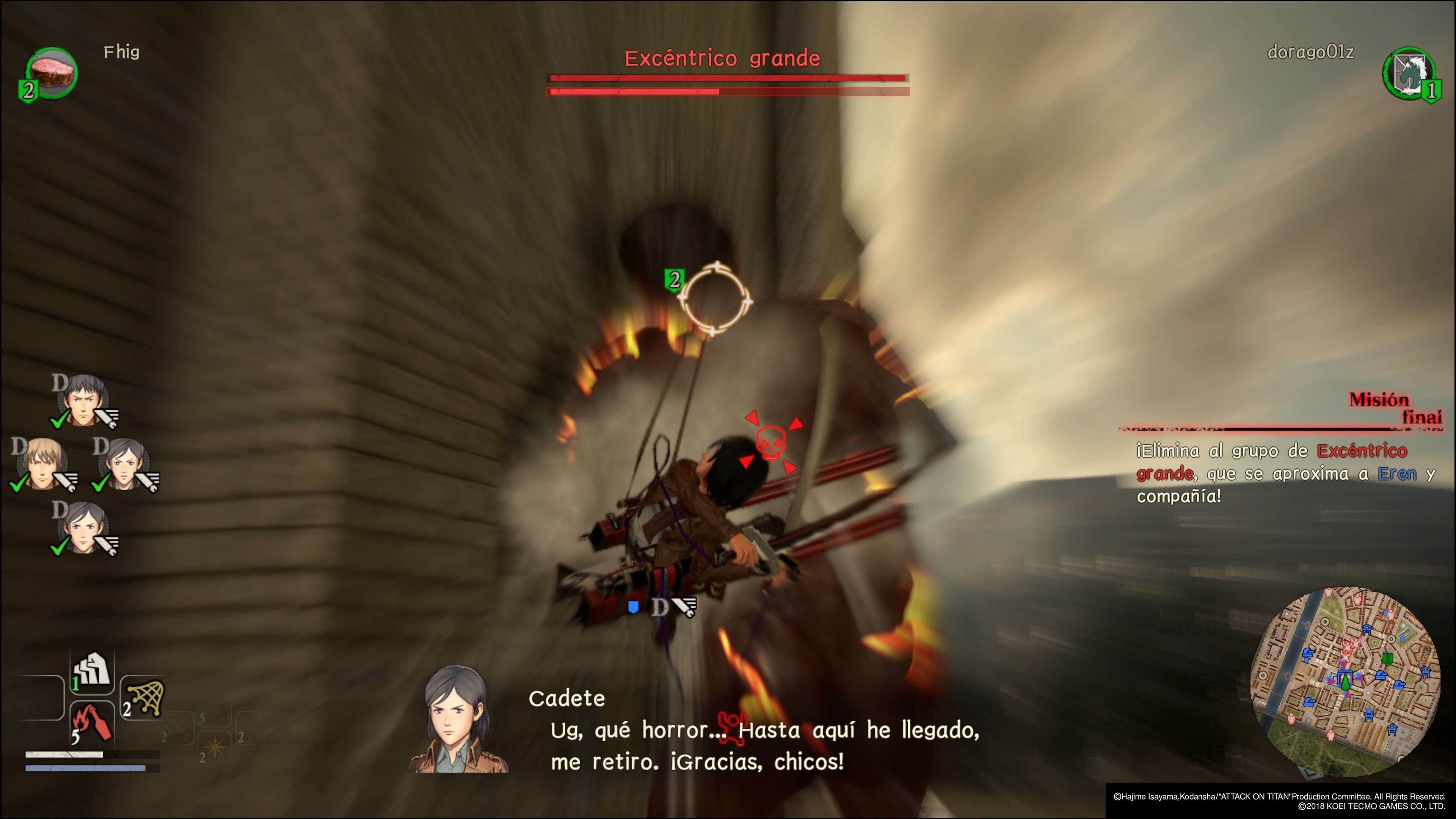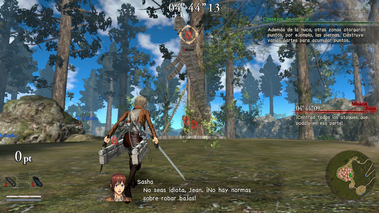 Lo bueno de esta mejora en el comportamiento de los titanes es que ahora captan mejor la esencia de la serie y los enfrentamientos con ellos ganan en intensidad, haciendo las partidas mucho más entretenidas. Evidentemente, todo esto también depende de lo avanzado que tengamos a nuestro personaje o de a quién controlemos, ya que, por ejemplo, con Mikasa nos sentiremos casi invencibles, mientras que con Sasha o Jean sufriremos bastante más.