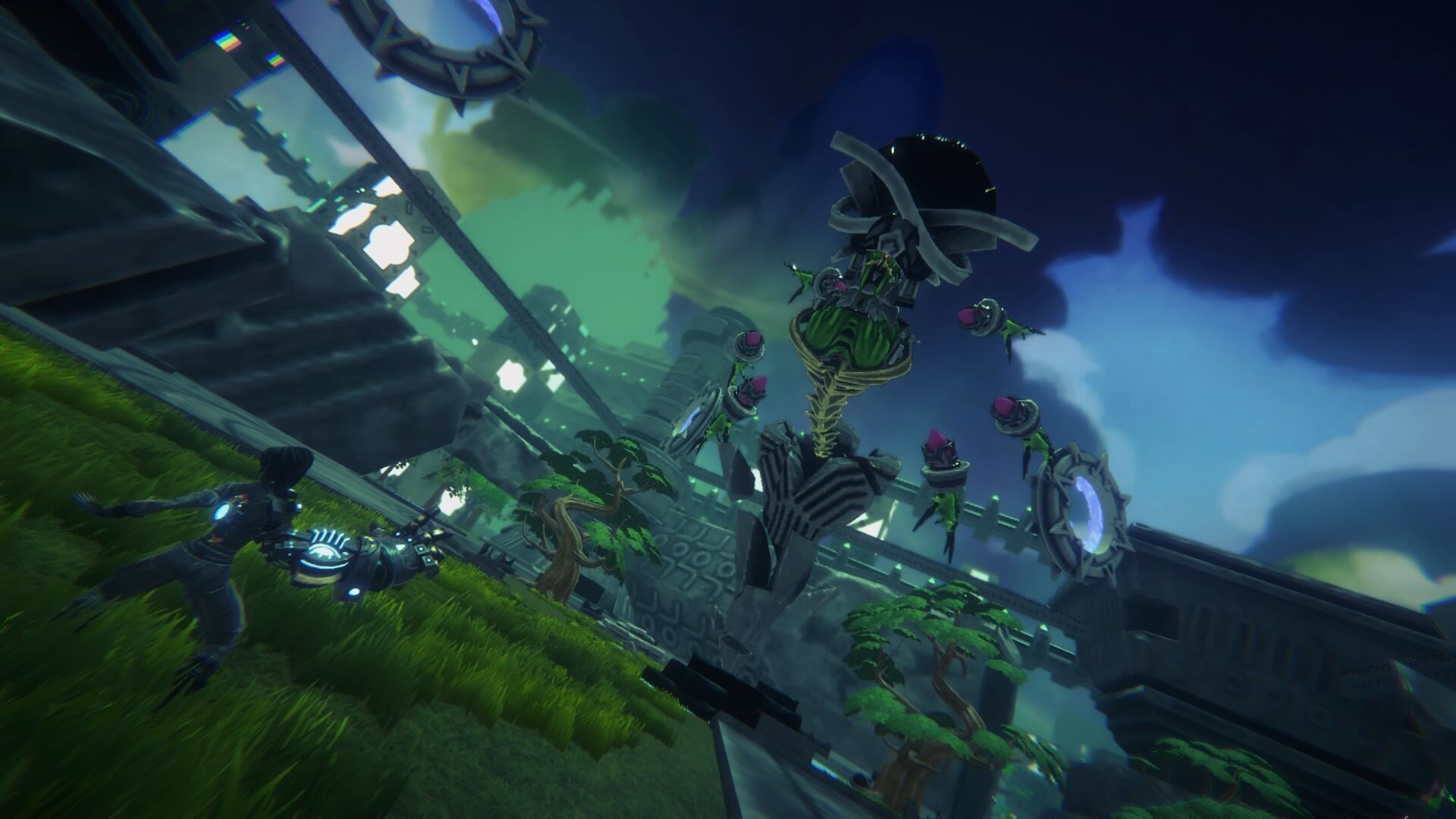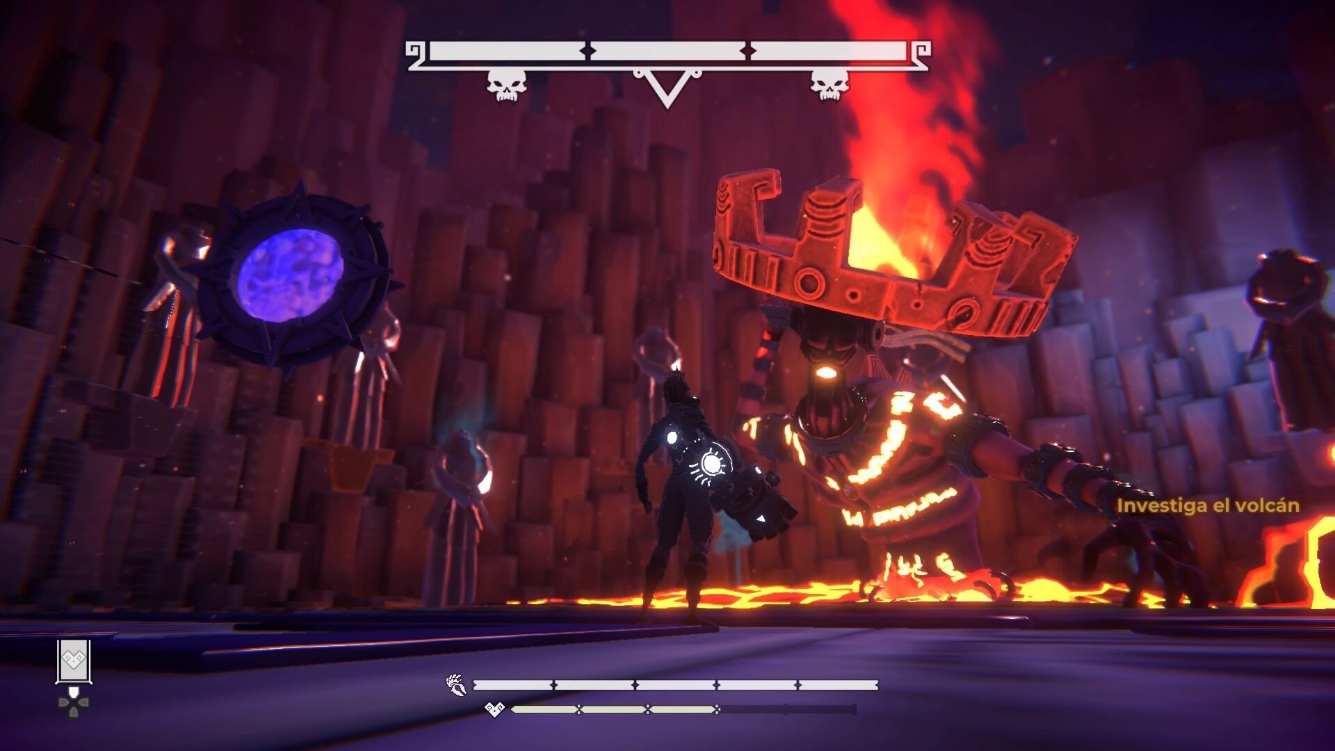 Este trasfondo, sin embargo, se ve rápidamente empañado por algunas de las torpezas a nivel de diseño, mecánicas y narrativa. La jugabilidad es la de un título de acción en 3D que presenta a su protagonista femenina, Achtli, como una heroína con un guante mecánico llamado Guardaluz, una suerte de artefacto antiguo relacionado con ese pasado azteca. El mayor de los inconvenientes viene del control del personaje, tanto por sus movimientos como por los de la cámara, que serán una caótica constante a lo largo del juego debido a su mal funcionamiento. Los únicos momentos en los que el control del personaje es sólido son cuando estamos en el suelo, pero la mecánica principal que tiene el Guardaluz es la de servir como propulsor, haciendo que juguemos suspendidos en el aire. La otra mecánica que responde de manera aceptable es la de engancharse a unos raíles de desplazamiento.
