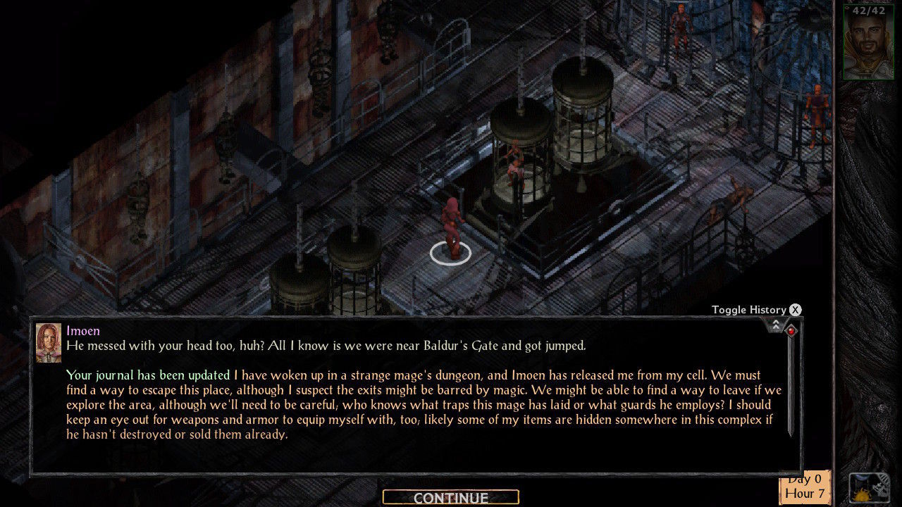 Baldur's Gate: Enhanced Edition mantiene intacta esa sensación de grandeza desde el minuto uno. A través de una perspectiva isométrica -que sigue manteniendo la posibilidad de hacer zoom, tal y como sucedió en la edición de 2012 para PC y móviles-, podemos deambular por los escenarios y mazmorras, interactuar con otros personajes, combatir o descubrir secretos y cofres allá por dónde vayamos. Su mundo es complejo, lleno de misiones y tramas, y aunque la historia principal está muy presente, no es de extrañar que acabemos aceptando encargos, topándonos con enemigos a las primeras de cambio o descubriendo oscuras cuevas llenas de tesoros incalculables.