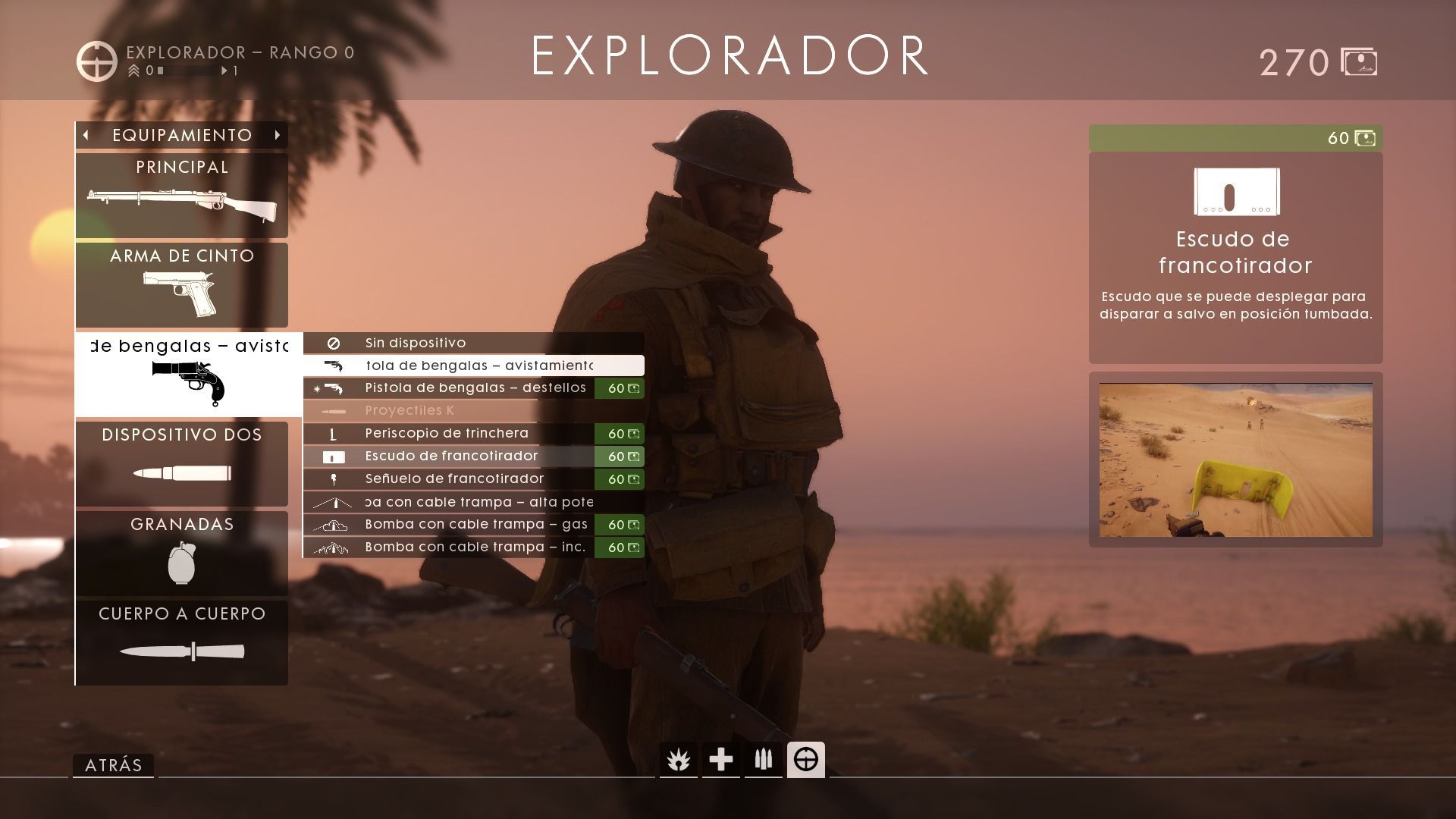 La tercera clase es Apoyo, en ella contaremos con todo tipo de ametralladoras de gran calibre y objetos especiales como el mortero, la bolsa de munición o la herramienta para reparar todo tipo de vehículos. Por último, podremos elegir Francotirador, con la que dispondremos de rifles de cerrojo y de infantería, así como un buen número de ayudas que irán desde una bomba trampa, a una pistola de bengalas para marcar objetivos, pasando por proyectiles antiblindaje, escudos, señuelos o periscopios. Sin duda, si a la potencia de su armamento le unimos la gran cantidad de complementos disponibles, esta clase es una de las más favorecidas, aunque exigirá mucha habilidad.