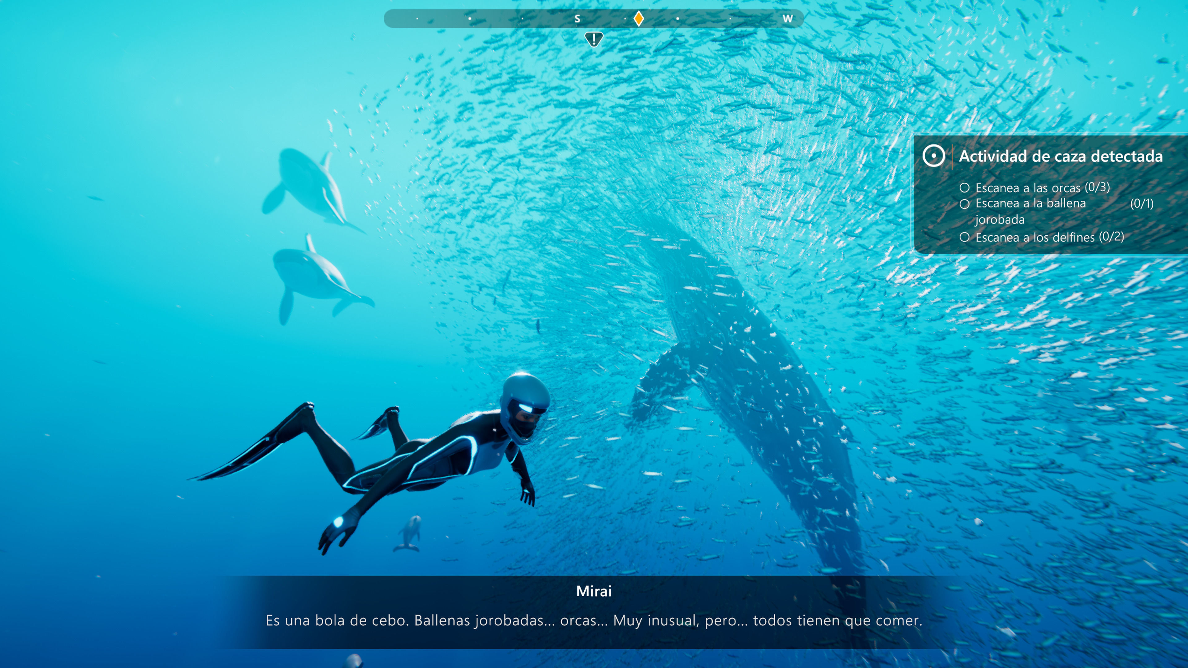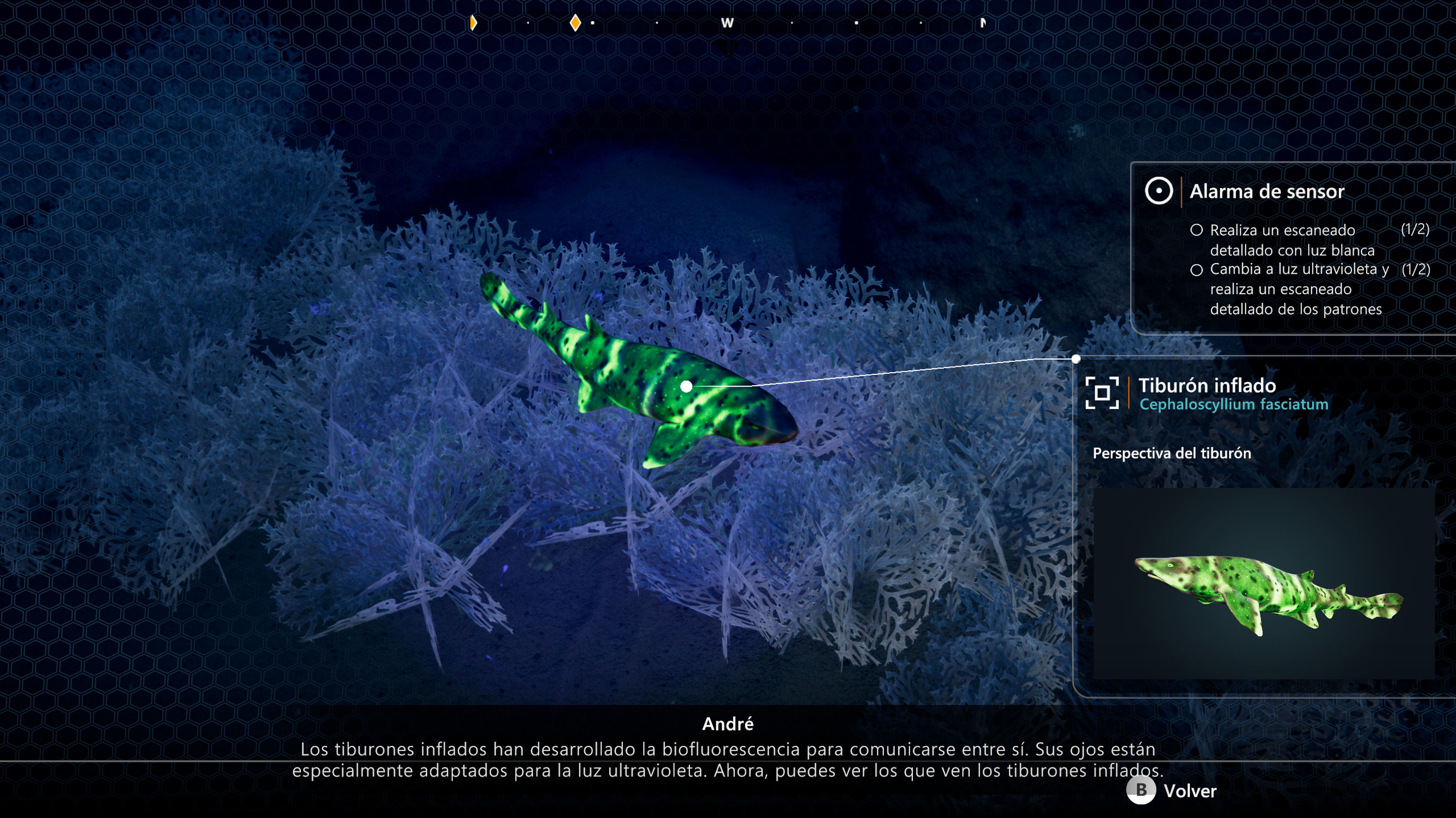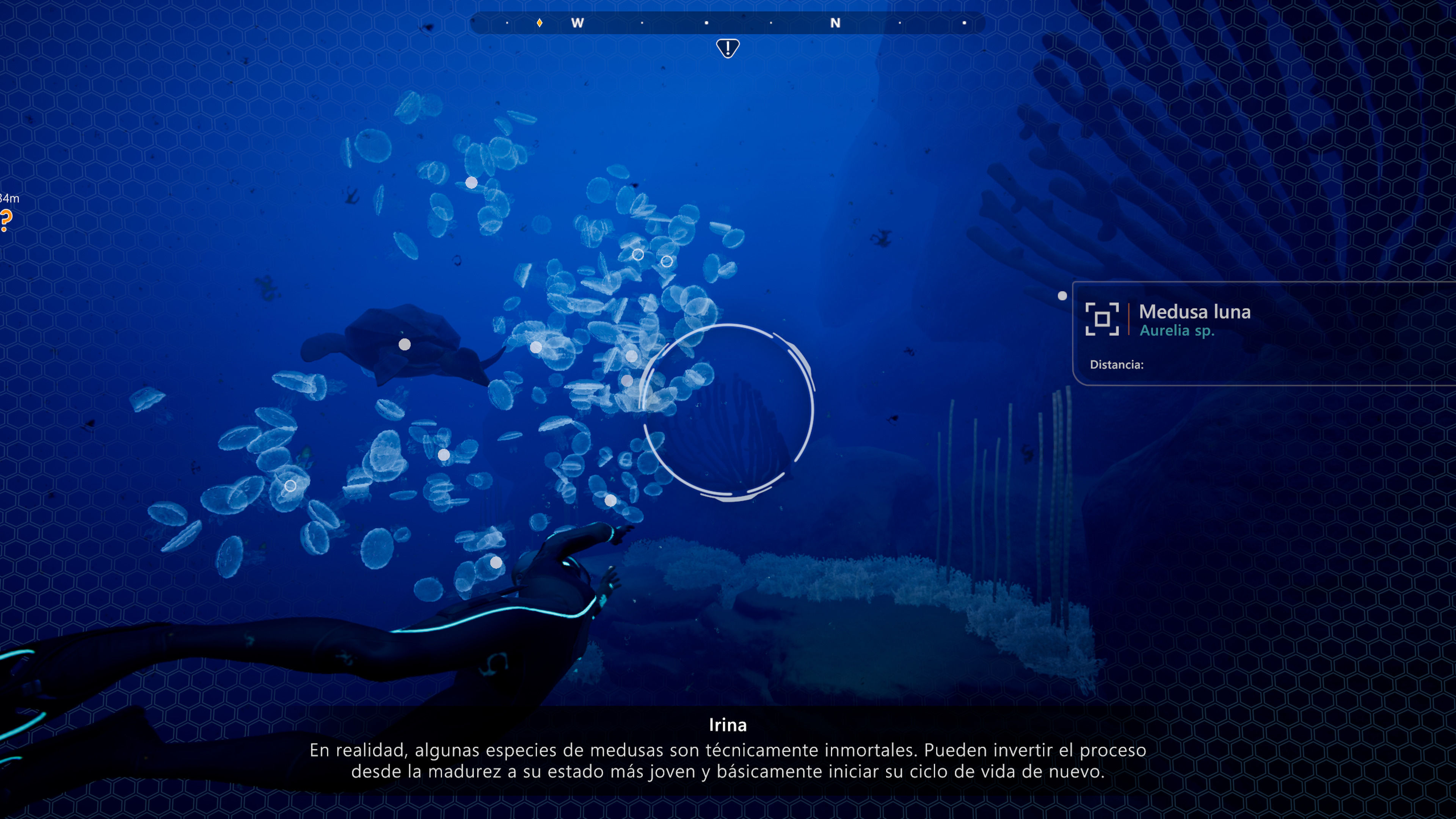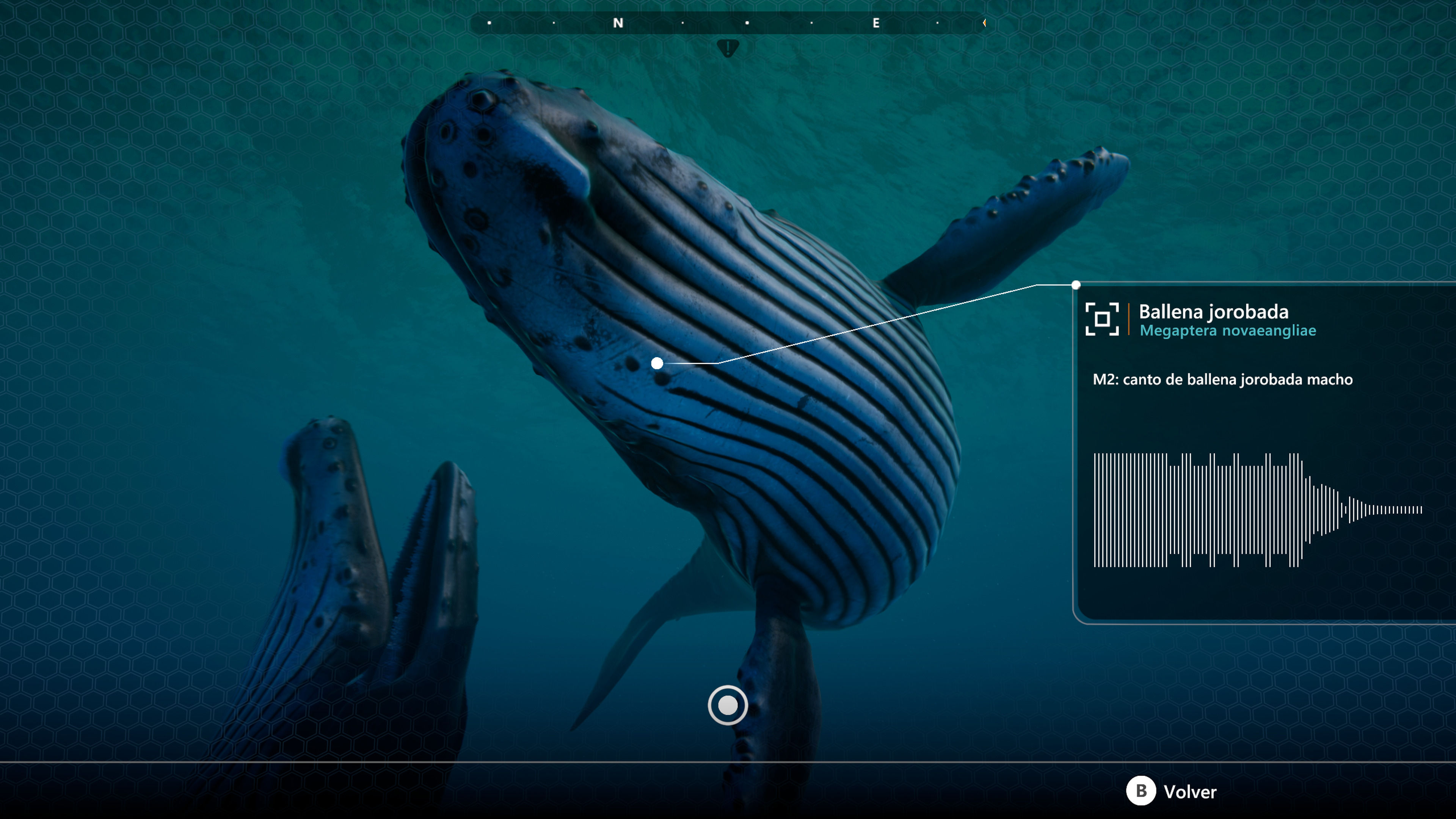 A nivel jugable es un título muy, muy sencillo, en el que vamos a nadar de un punto a otro en búsqueda de balizas que nos den nuevas tareas y nuevos animales que escanear. No hay ningún desafío, pero no es algo que busque. Es un juego diseñado para relajar, para sumergirse –nunca mejor dicho– y descubrir qué guarda la fauna marina. Además de los objetivos principales, también podemos escanear otras criaturas que simplemente pasen por allí. Tenemos una completa enciclopedia en la que podemos encontrar información detallada de todas las especies que escaneemos y, cuantos más especímenes escaneemos, más desbloquearemos sobre ellos, incluyendo animaciones para los modelos tridimensionales que podemos reproducir.