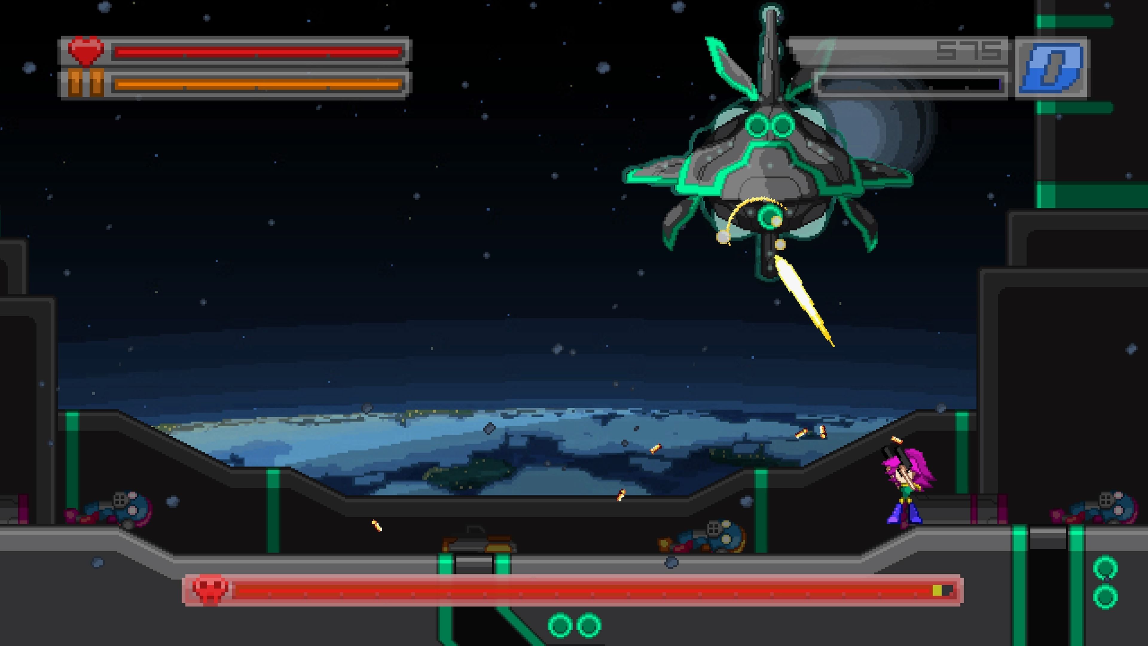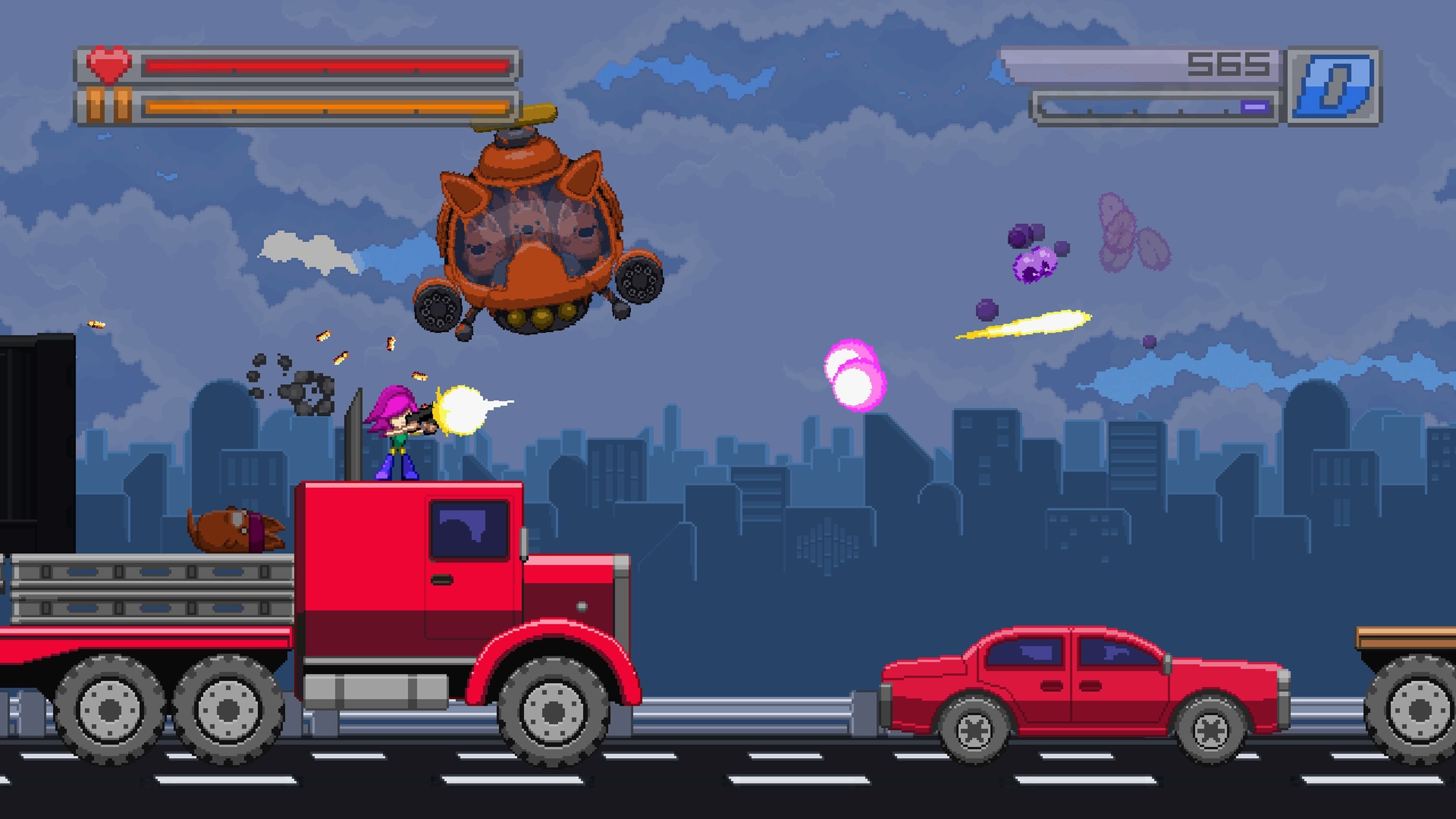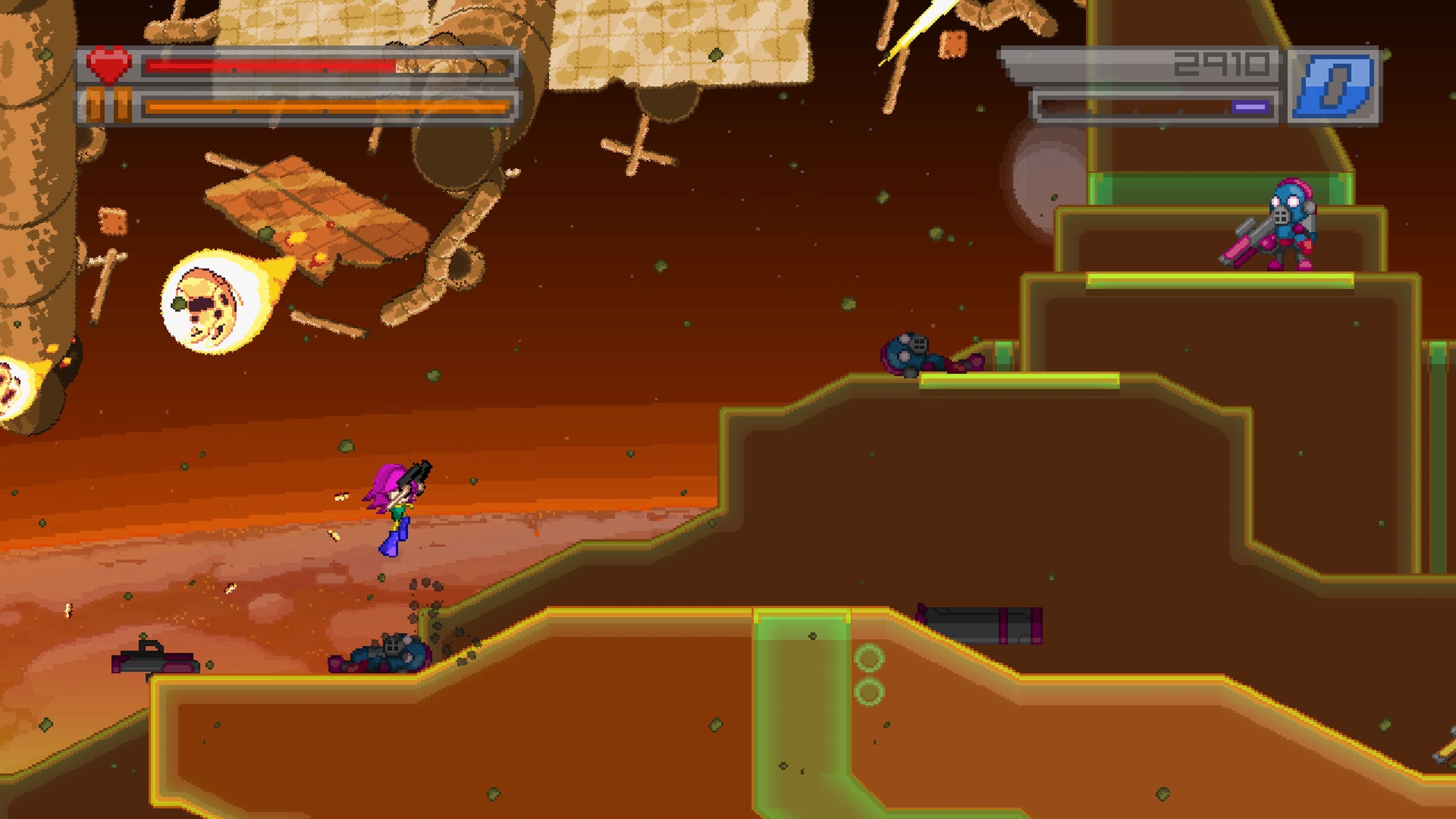 La historia no puede ser más simple y nos invita a salvar el mundo (una vez más) de una invasión alienígena. Para eso está Wryn, la gran protagonista, una chica pelirroja de armas tomar que es una auténtica experta en el campo de la destrucción y el plataformeo.