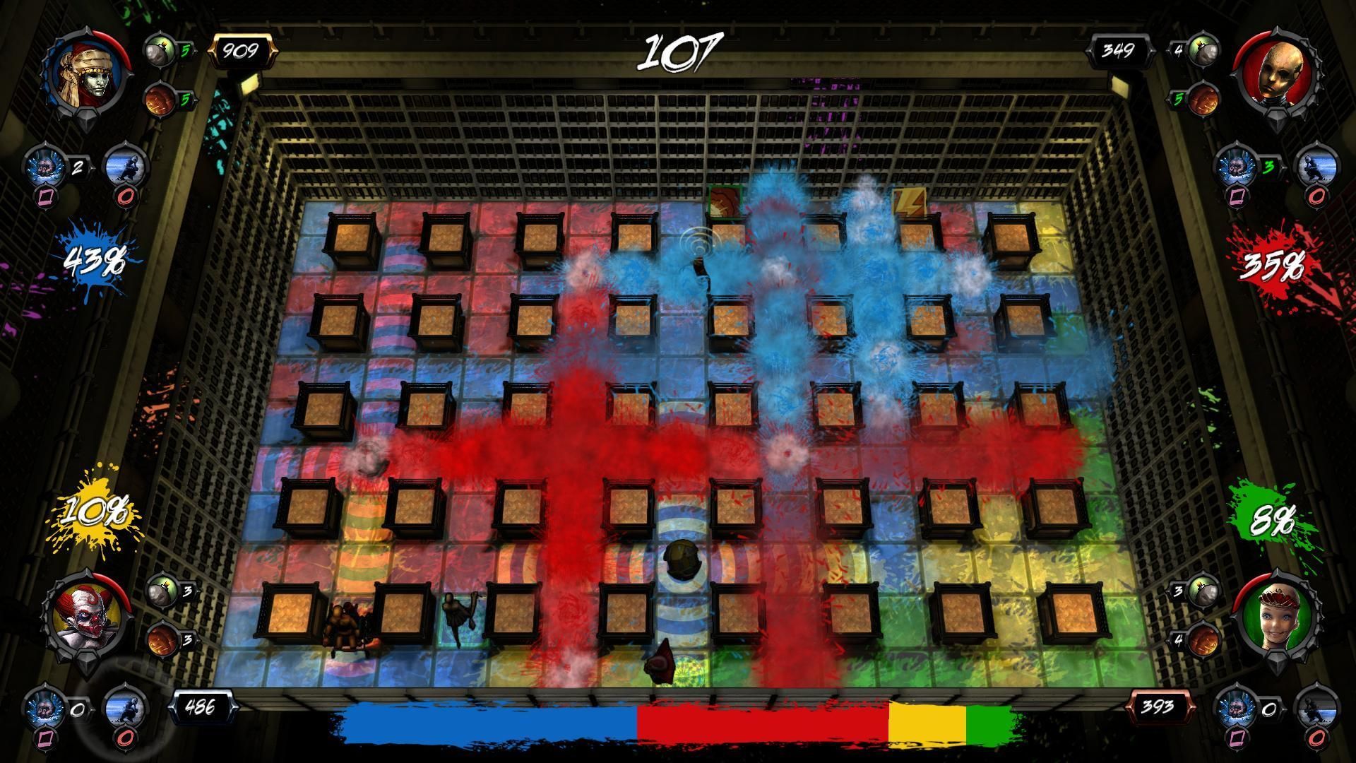 En la misma consola las opciones son enfrentamiento, duelo y tres más: clásico –directo guiño a Bomberman- donde aquí todos los personajes tienen una bonificación inicial; sumo, que consiste en echar fuera del tablero a los oponentes –hay ítems propios de este modo-; y dominación por color, donde el objetivo es cubrir el mapa con bombas de pintura.