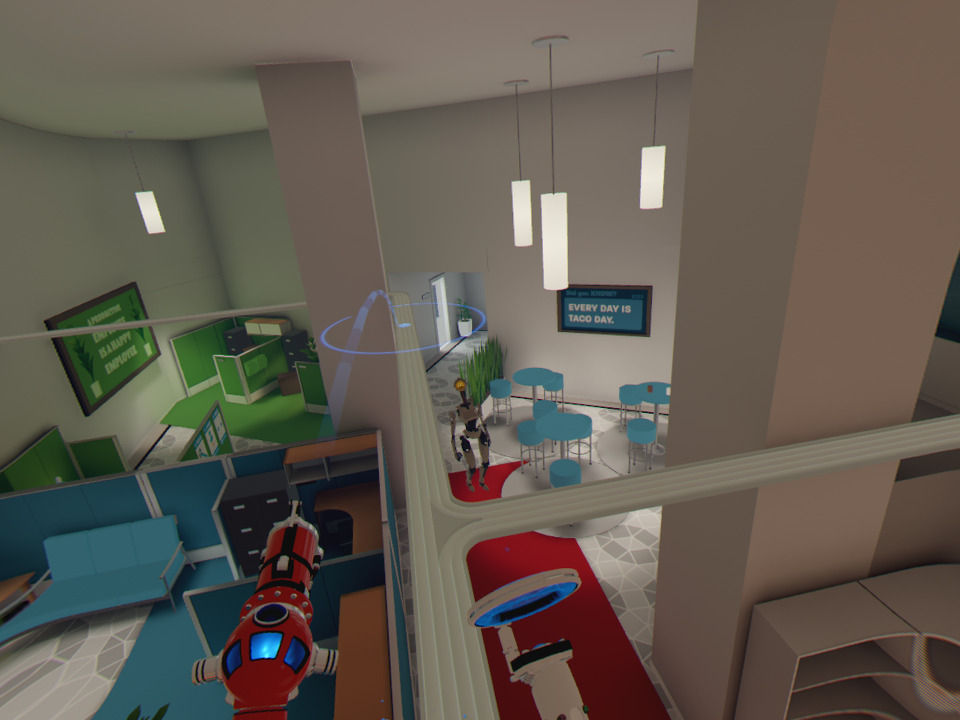 Así comienza nuestra aventura, en la que la prioridad es encontrar el camino, si es posible, sin ser vistos. Los dos pilares de la aventura son la infiltración y la exploración, ambos muy bien implementados. Para movernos tenemos una pistola de teletransporte que nos parece una genialidad, ya que convierte una de las carencias de la realidad virtual en una de las principales características jugables.