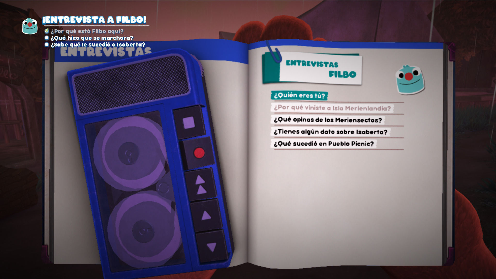 Al llegar a la Isla Merienlandia tras un aparatoso accidente, pronto descubrimos que Isaberta está perdida en la isla y que la pequeña comunidad que se había unido en torno a ella está desperdigada por el lugar. Nuestro objetivo es entrevistar a la exploradora, y para averiguar su paradero, tendremos que ir encontrando a los antiguos habitantes de Pueblo Picnic para cuestionarlos sobre cómo han acabado en la isla, descubrir pistas sobre dónde está Isaberta, y por supuesto, su opinión sobre los Meriensectos.