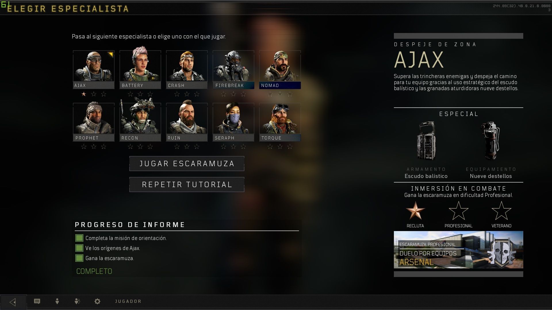 Cada especialista tendrá de forma exclusiva estas habilidades que les servirán para ocupar un rol específico dentro del multijugador, siendo útiles para según qué situaciones o modos de juego, pudiendo encontrarnos desde un tanque, llamado Ajax, hasta un sanador llamado Crash, pasando por especialistas enfocados en el daño como Battery y otros que son todo un apoyo para el equipo como Seraph.