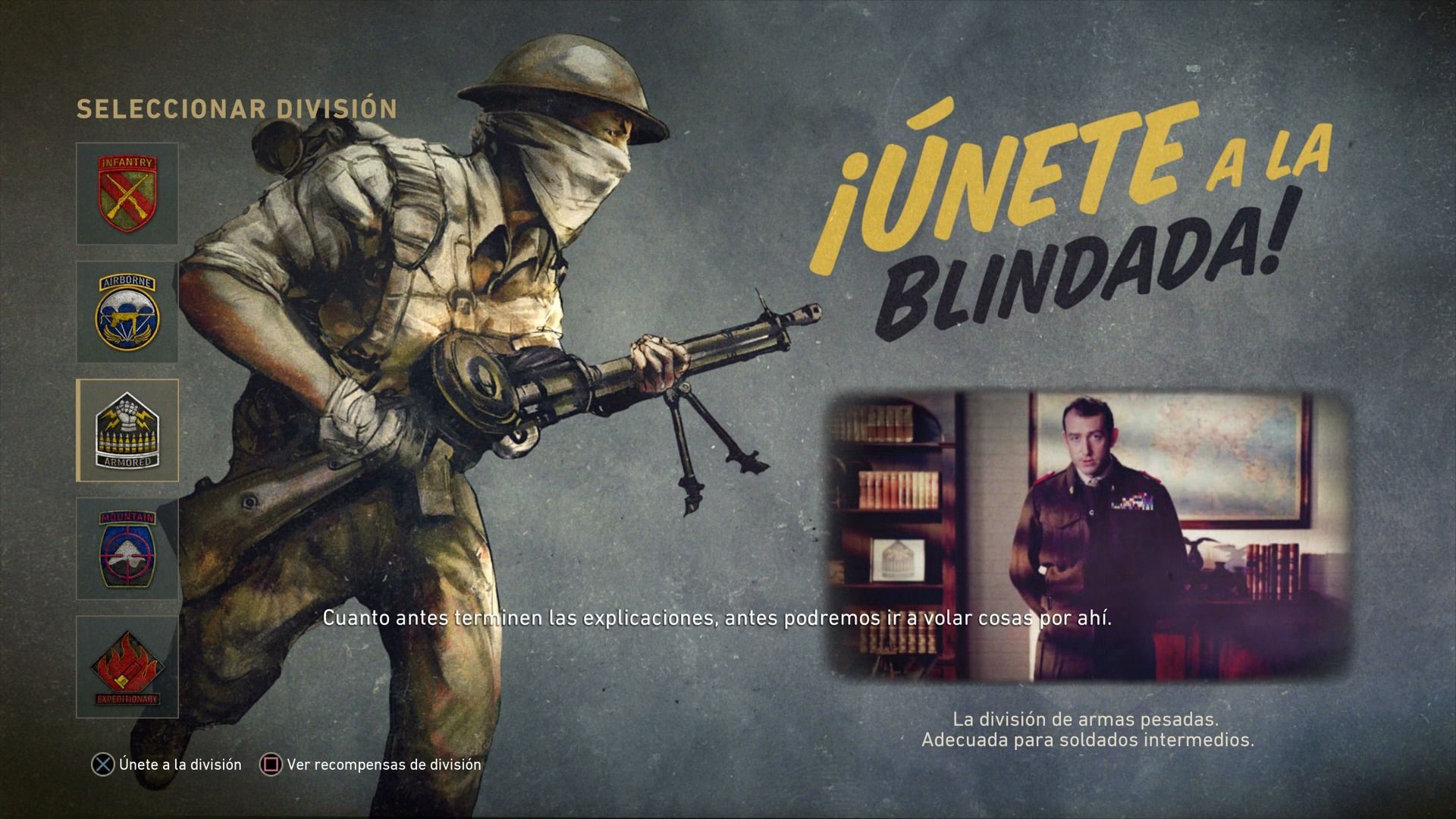 Nada nos impide más adelante alistarnos en el resto de divisiones y realizar cualquier combinación posible de armas, para crear un personaje a nuestra medida, y en líneas generales es un acierto porque aporta algo nuevo al desarrollo y la sensación de progresión, a invitarte a jugar más, pero no limita tus posibilidades de crear un personaje a tu gusto.
