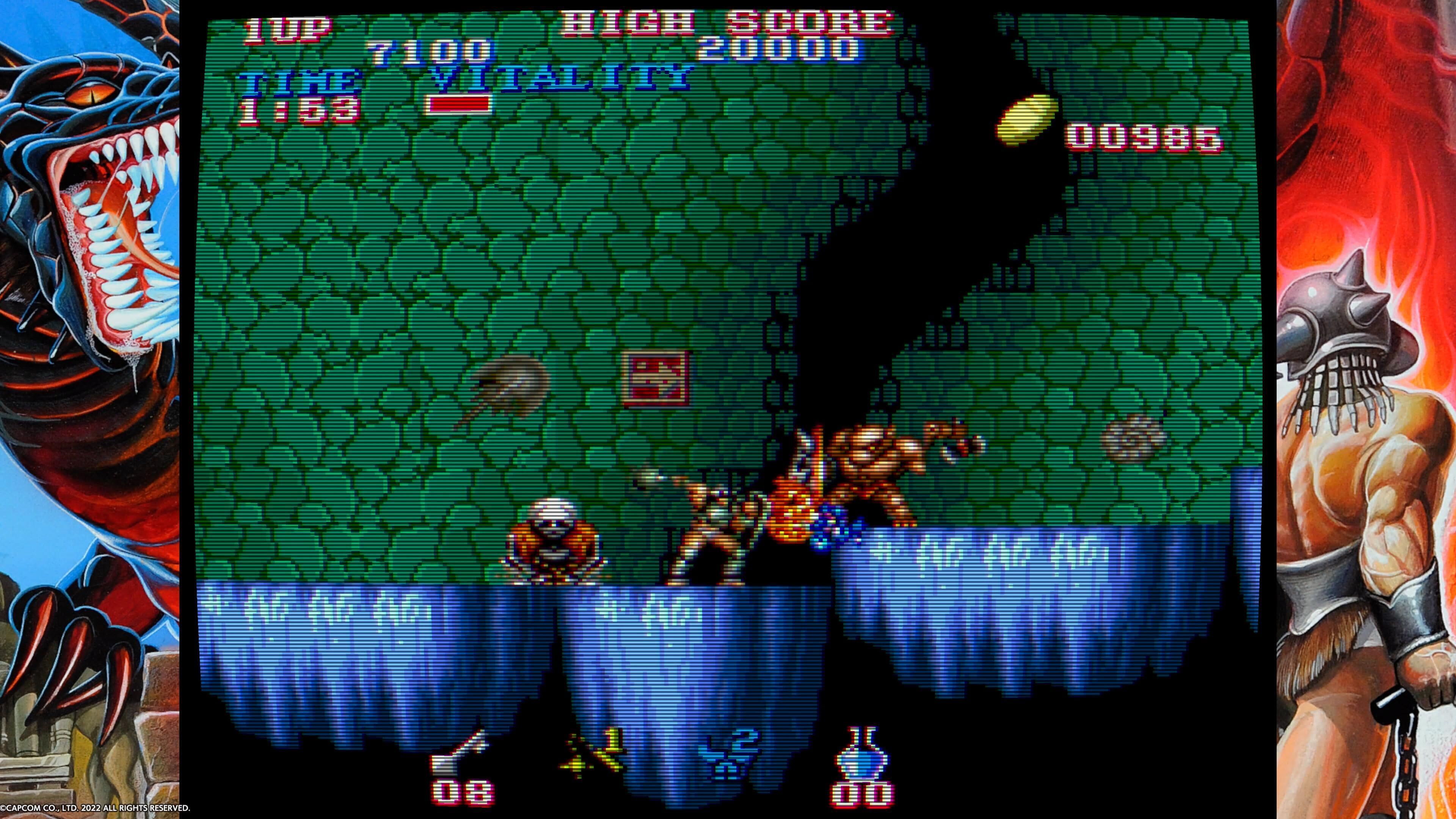 Más allá de la lucha, también tenemos nombres tan míticos como Black Tiger, GunSmoke o Eco Fighters, a los que hay sumarles un buen puñado de juegos divertidísimos como Knights of the Round, Magic Sword, Hyper Dyne Side Arms, el adictivo SonSon o auténticas rarezas que suelen quedarse fuera en este tipo de productos como Three Wonders o Mega Man 2: The Power Fighters. Como veis, tenemos acción con plataformas, beat ‘em up de la vieja escuela, buenos shoot ‘em up, arcades puros como Block Block (un clon de Breakout), puzles geniales como Super Puzzle Fighter II Turbo y hasta algo de deporte con Capcom Sports Club.