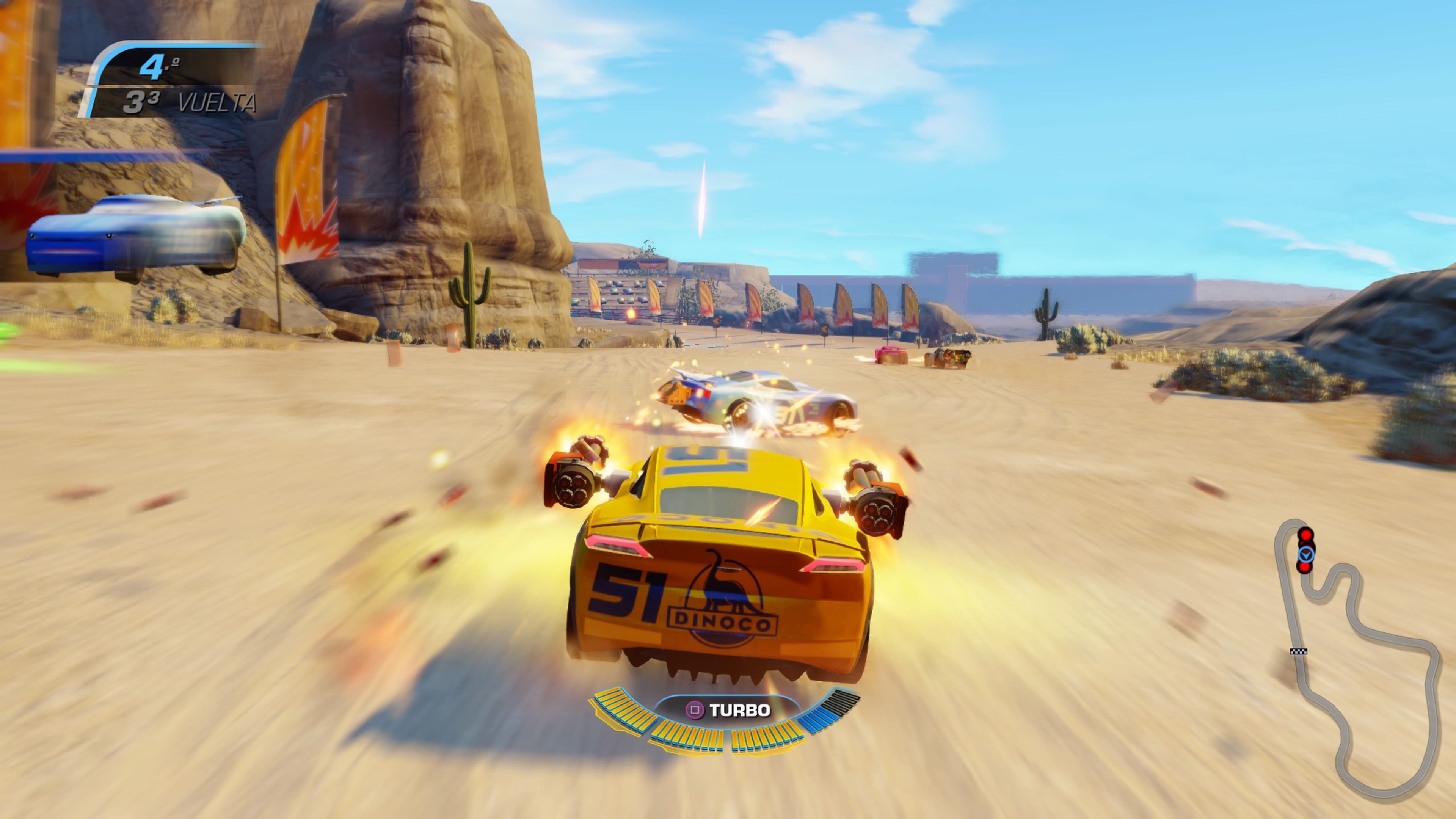 Por eso cuando nos encontramos con un juego de este tipo que está realmente trabajado y que encima cuente con una buena jugabilidad, la sorpresa que nos llevamos suele ser doble. Esto es justamente lo que nos ha pasado con Cars 3: Hacia la victoria, título que tenemos que admitir que encaramos en un principio con cierto escepticismo y desconfianza, pero que no ha tardado ni diez minutos en convencernos de que no estábamos ante la enésima adaptación hecha deprisa y corriendo de películas a videojuegos.
