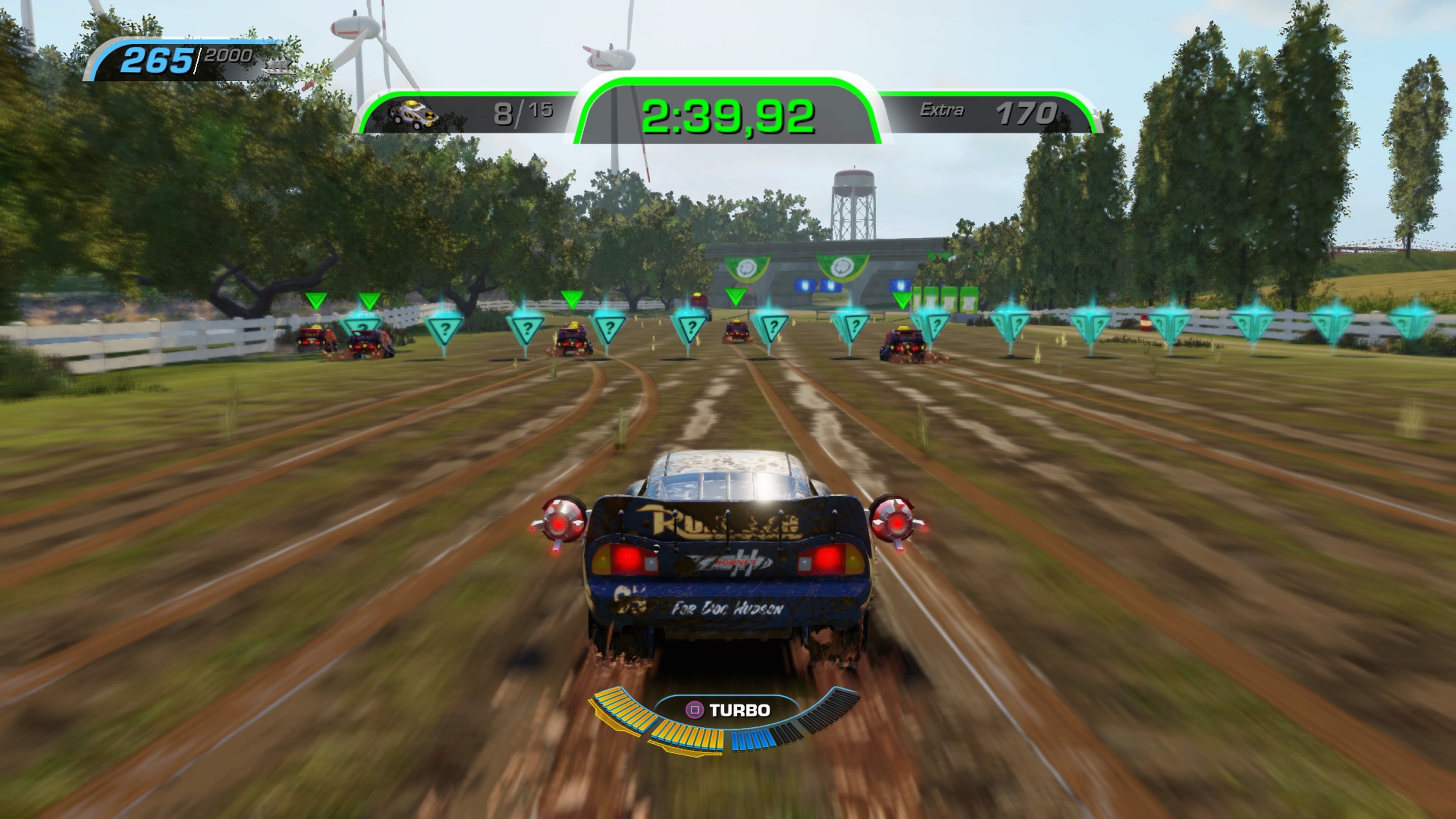 Para obligarnos a dominar todos los movimientos de nuestro coche, en los trazados encontraremos una serie de bandas que nos llenan una enorme cantidad de nuestro medidor de turbo, aunque estas solo se activan si ejecutamos la acción que nos indiquen, como derrapar o conducir de espaldas.