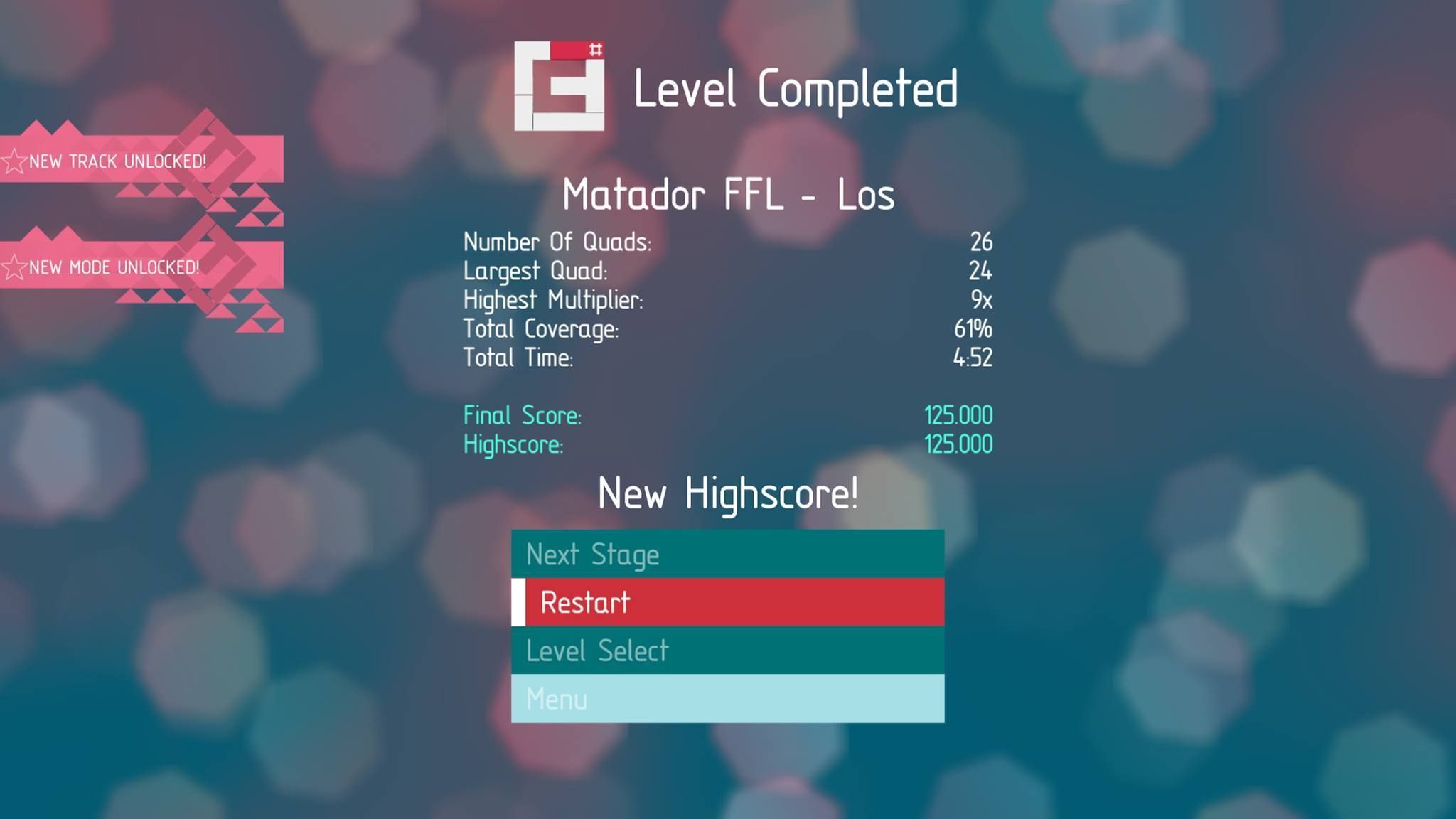 Dominar estas técnicas y cubrir el mayor porcentaje de la pantalla es esencial no sólo para batir récords, sino también para desbloquear nuevas fases y modos, puesto que inicialmente estamos un poco limitados en diseño de tablero, paleta de colores y música. Por una parte reduce las opciones para comenzar a jugar, pero por otra nos fuerza a mejorar.