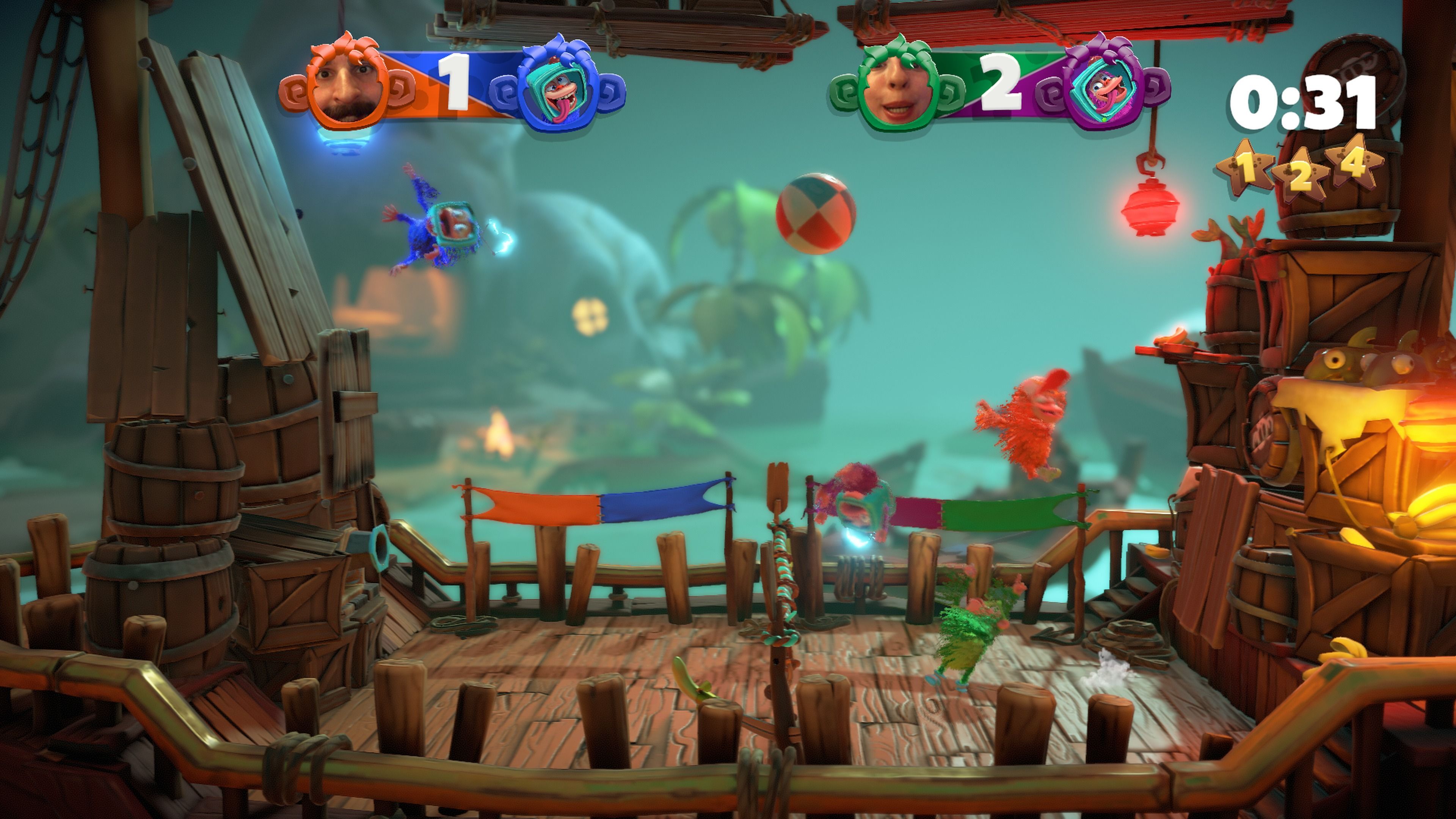 Así, lo que más importa aquí es la inteligencia, los reflejos, el timing, la sincronización y, por qué no decirlo, la suerte. En total, encontramos 18 pruebas diferentes, que van desde encestar a nuestro mono en una canasta a cooperar en un frenético juego de voleibol. La verdad es que una de las cosas en las que más acierta Chimparty es en ofrecer mucha variedad de pruebas con pocas mecánicas, haciendo que, una vez que los jugadores menos experimentados se adapten a ellas, puedan disfrutar de cualquier minijuego sin problema.