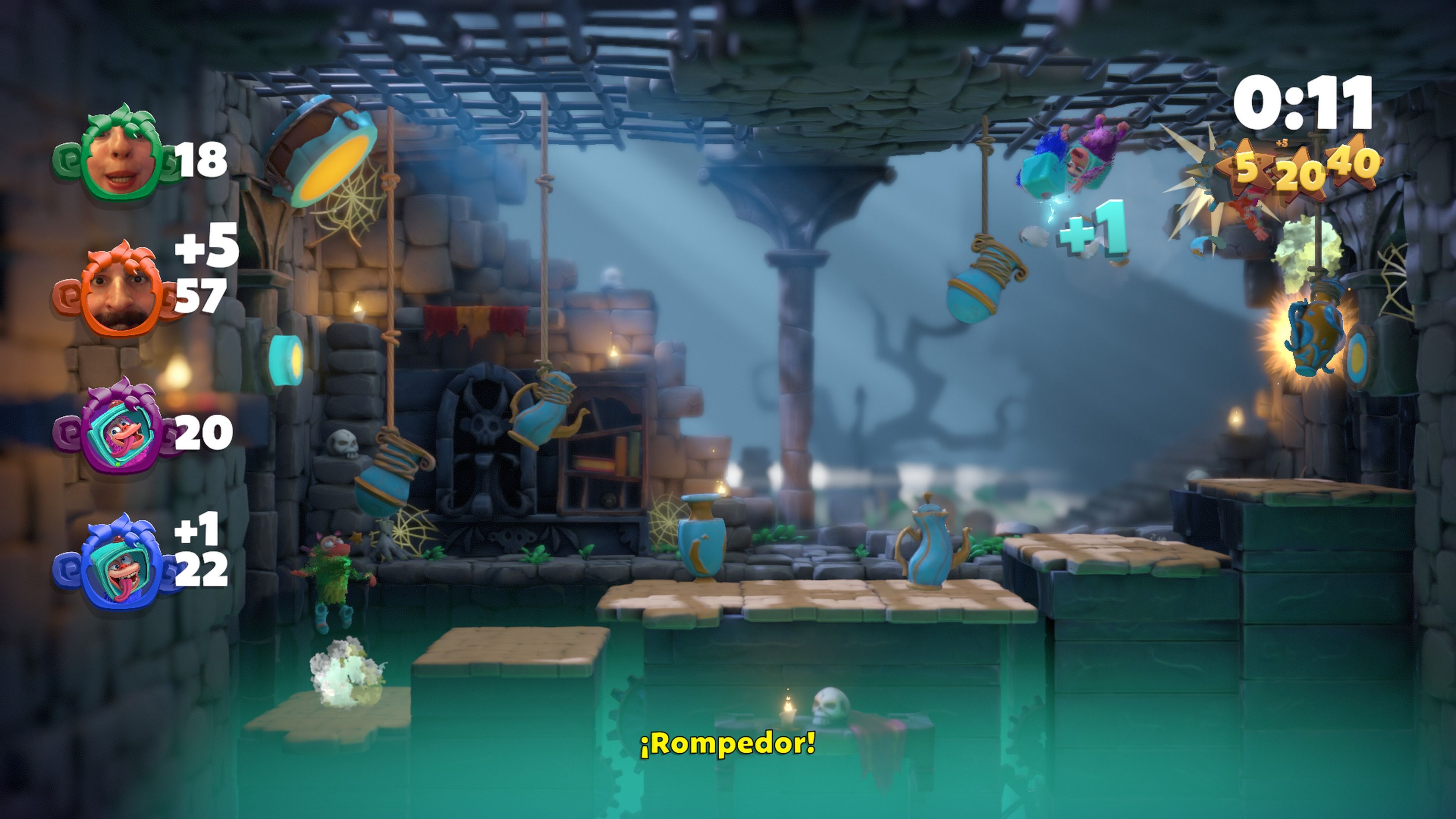 El mayor pero que le ponemos al apartado gráfico es que puede volverse bastante caótico. Con cuatro chimpancés en pantalla, objetos con los que interactuar –que pueden ser pelotas, plátanos, palos a los que agarrarnos…– la interfaz y demás, hay momentos en los que cuesta seguir la acción, sobre todo para los jugadores más experimentados. No es un gran problema y te acabas acostumbrando, pero sí algo que podría haberse cuidado más.