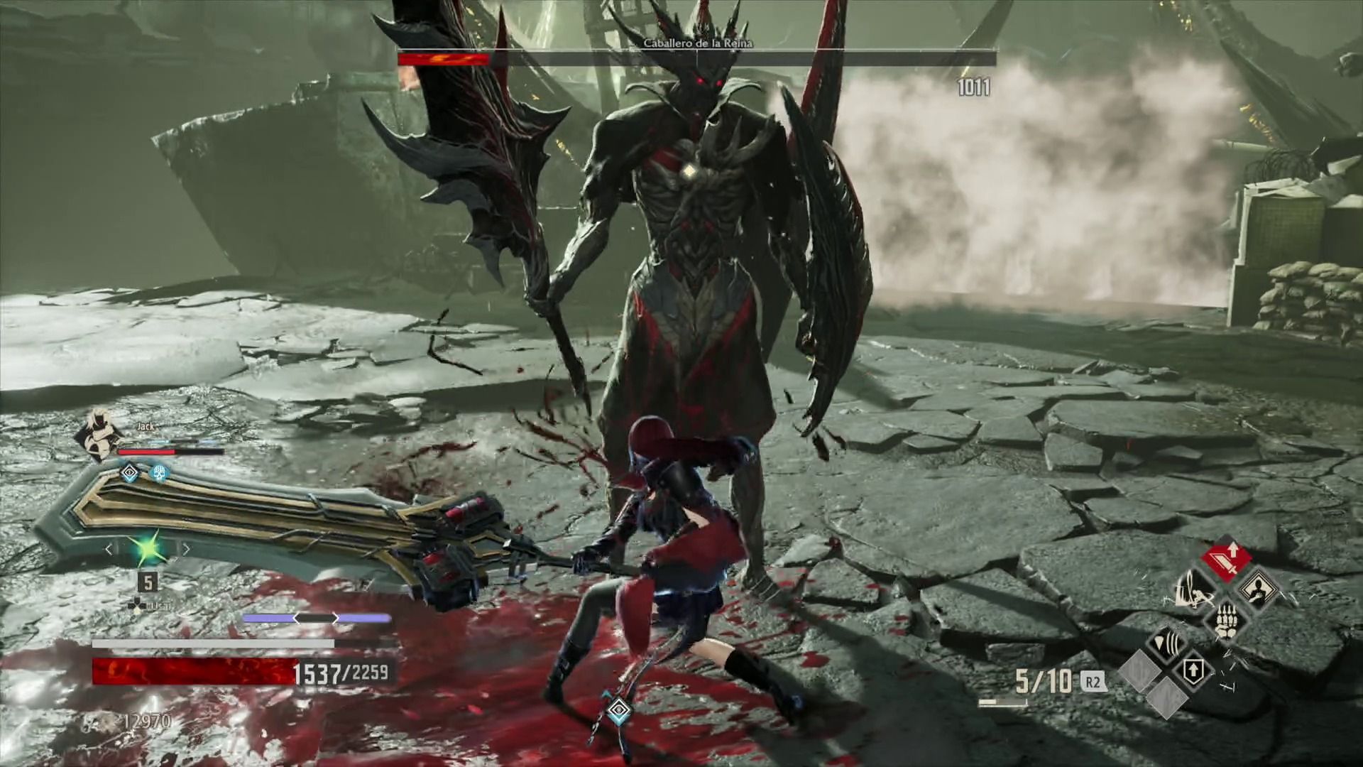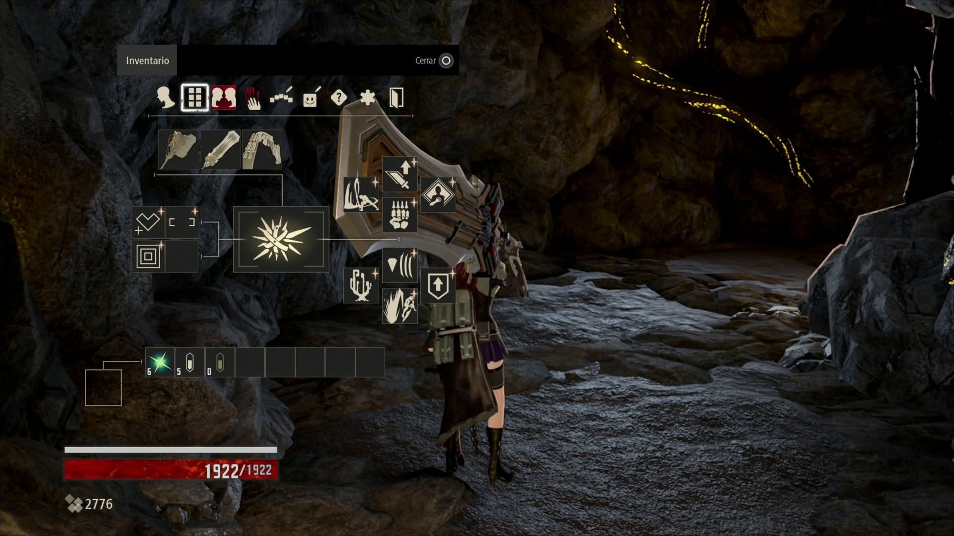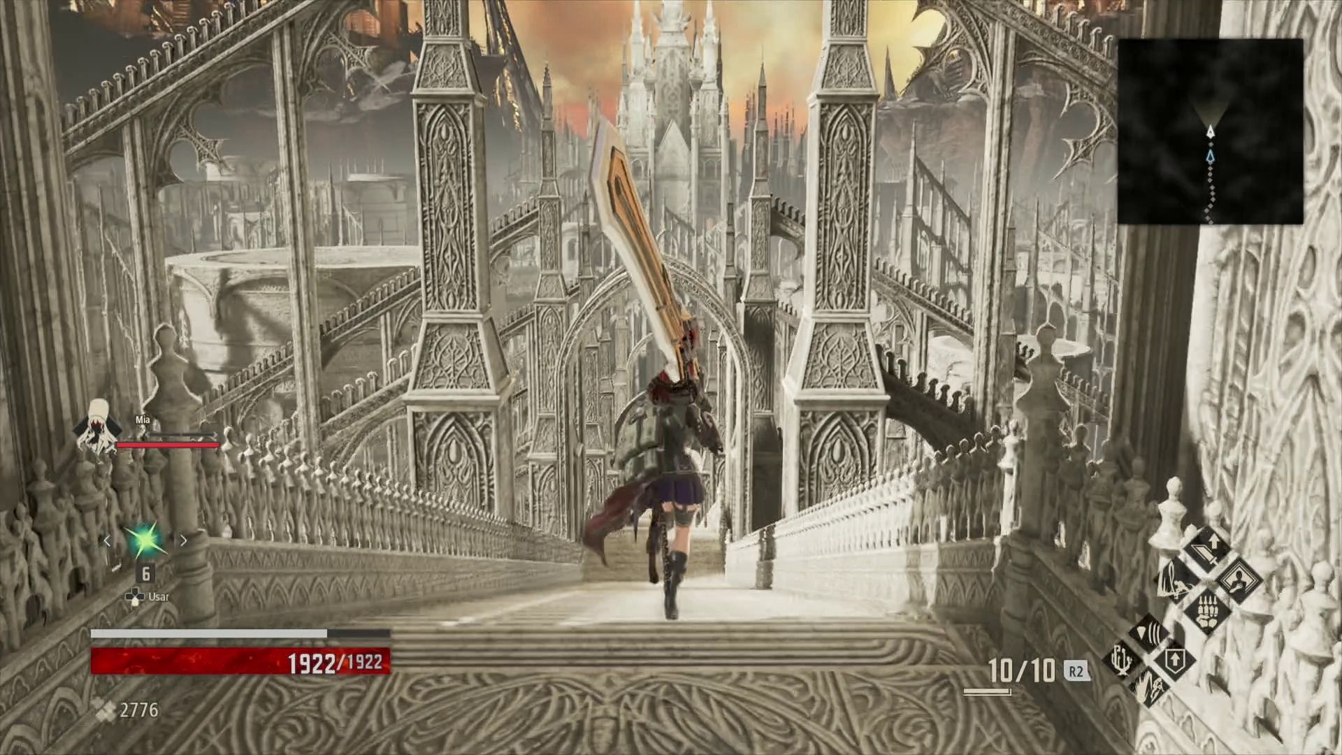 Esto es algo que también podemos aplicar al equipo, ya que hemos llegado sobradamente a los títulos de crédito con una espada y una armadura que obtuvimos al inicio de la aventura y que fuimos mejorando en la herrería (solo podemos equiparnos con dos armas entre las que podemos alternar y con un velo de sangre, que sería el equivalente a nuestra protección).