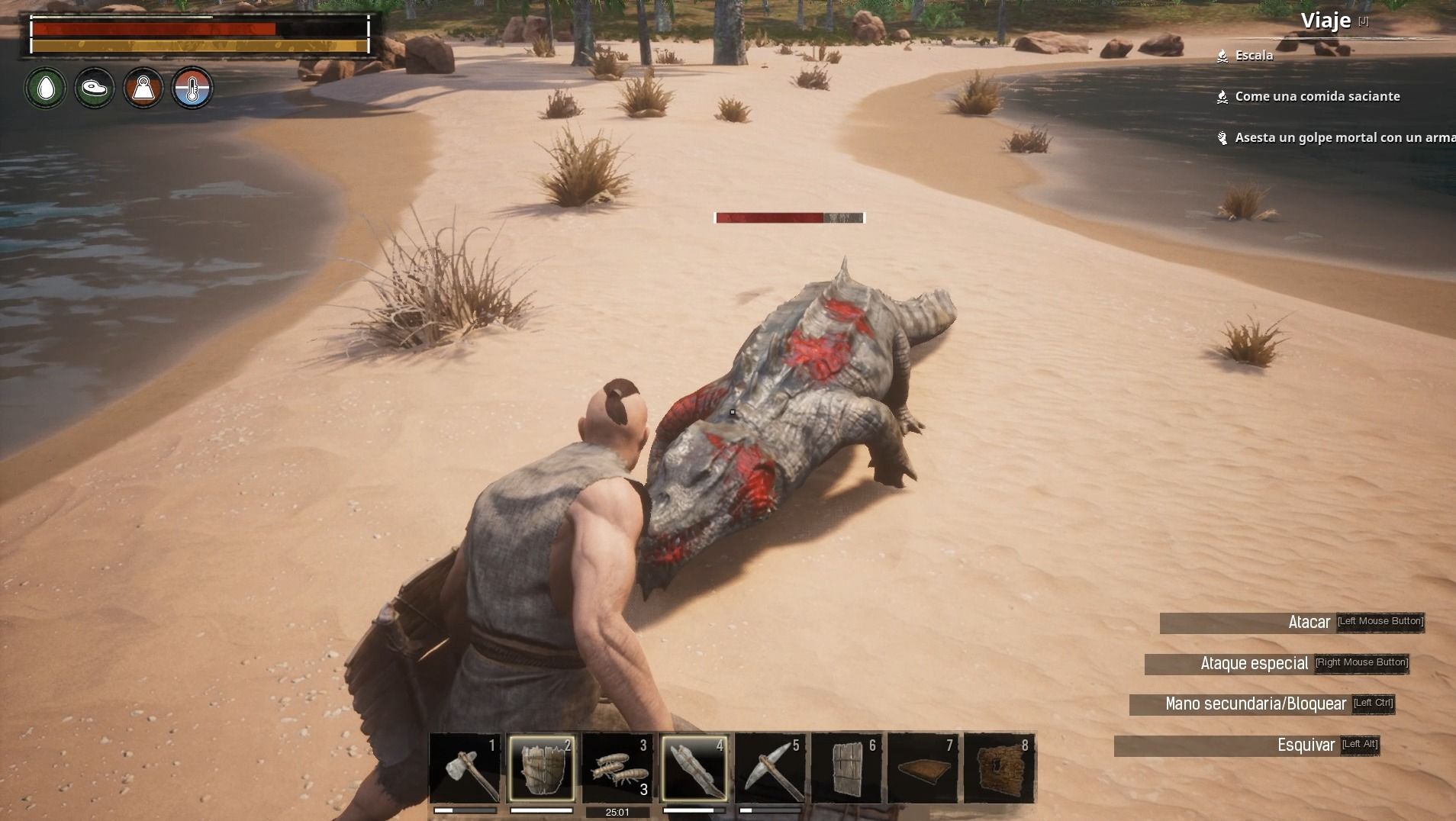 En todo momento tendremos que controlar nuestro nivel de hidratación y hambre. Para ello será fundamental que comencemos a cazar animales y que busquemos una fuente de agua potable. Esta mecánica de supervivencia ha sido muy bien diseñada porque, aunque requiere de una atención constante, nos permite avanzar sin preocupaciones excesivas, algo fundamental en este tipo de aventuras.
