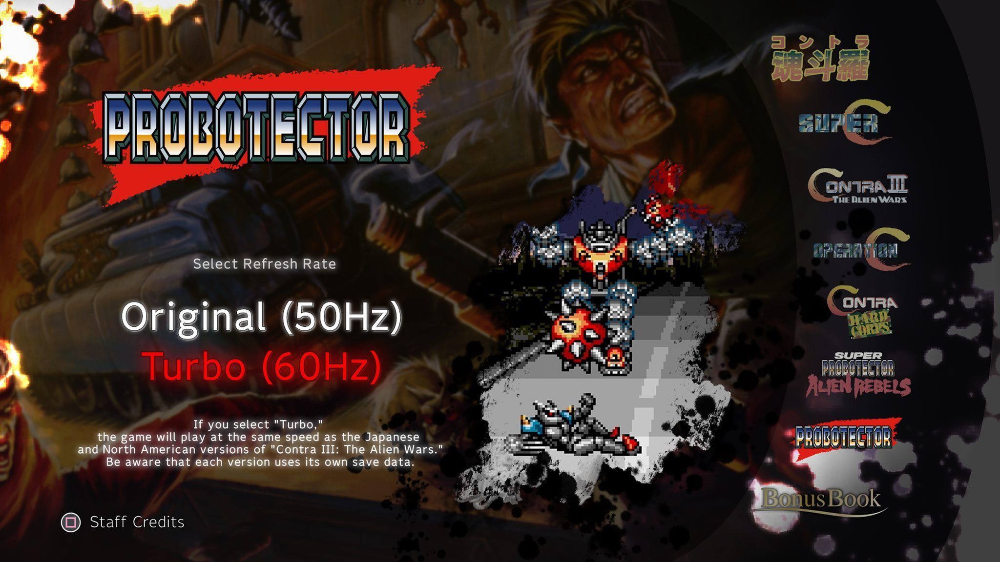 Sin embargo, otras versiones tipo Contra de NES y Famicom, o Contra III/Super Probotector y Contra: Hard Corps/Probotector son mucho más parecidas entre sí y eso resta valor a la colección, pues no tiene tantos juegos como parece en un principio. La prometida decena del listado realmente queda en siete juegos o casi la mitad si somos un poco estrictos.