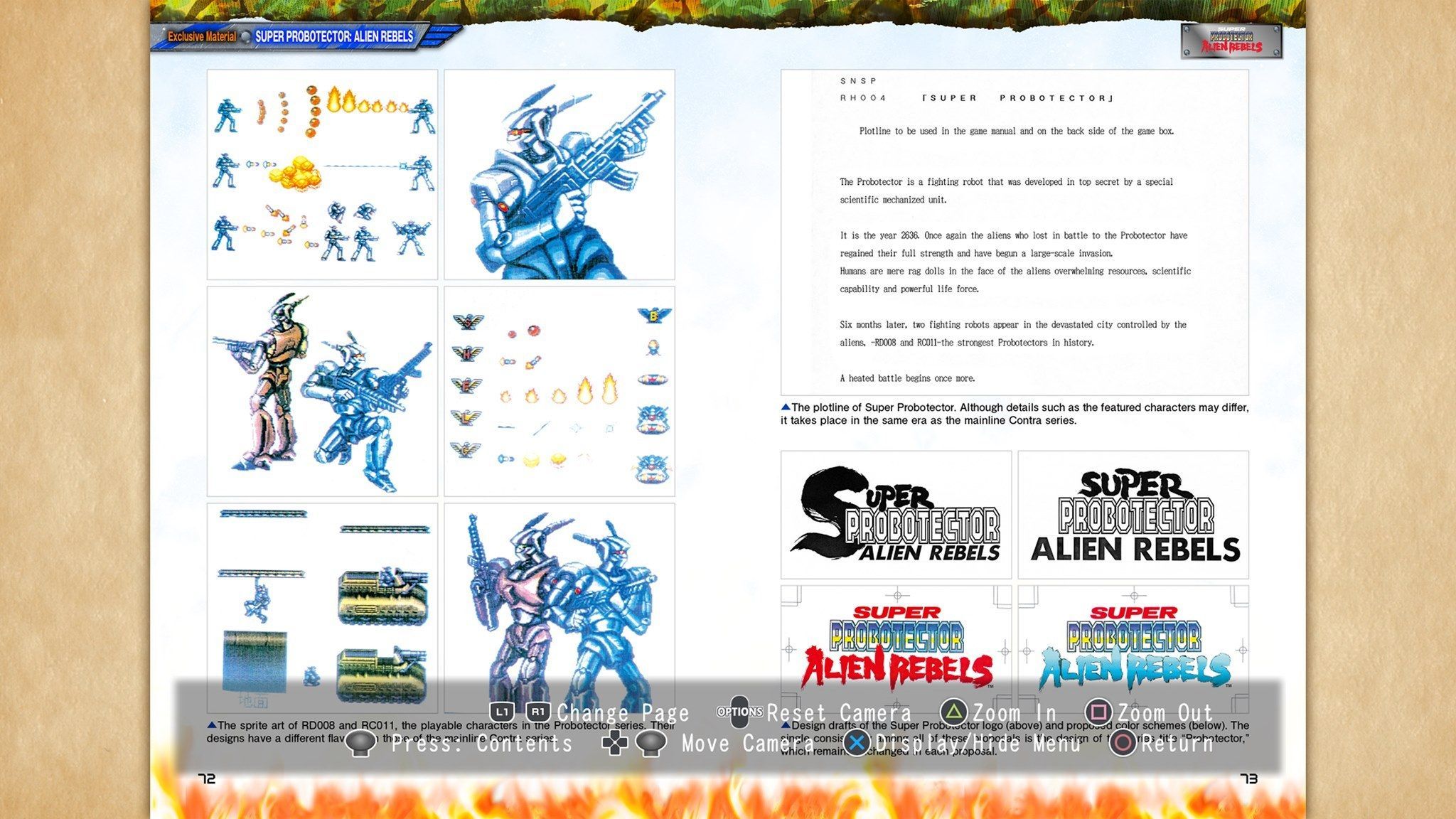 En cuanto a los extras suma un documento digital con entrevistas y bocetos de la saga, el habitual PDF del que vamos pasando páginas con curiosidades para los fans que deseen conocer algunos diseños de los títulos de la colección. Podría ser más exhaustivo para tratarse de un homenaje a Contra y los 50 años de Konami, o dar un contexto a la influencia de cada juego, algo que en general los recopilatorios de Capcom hacen mejor.