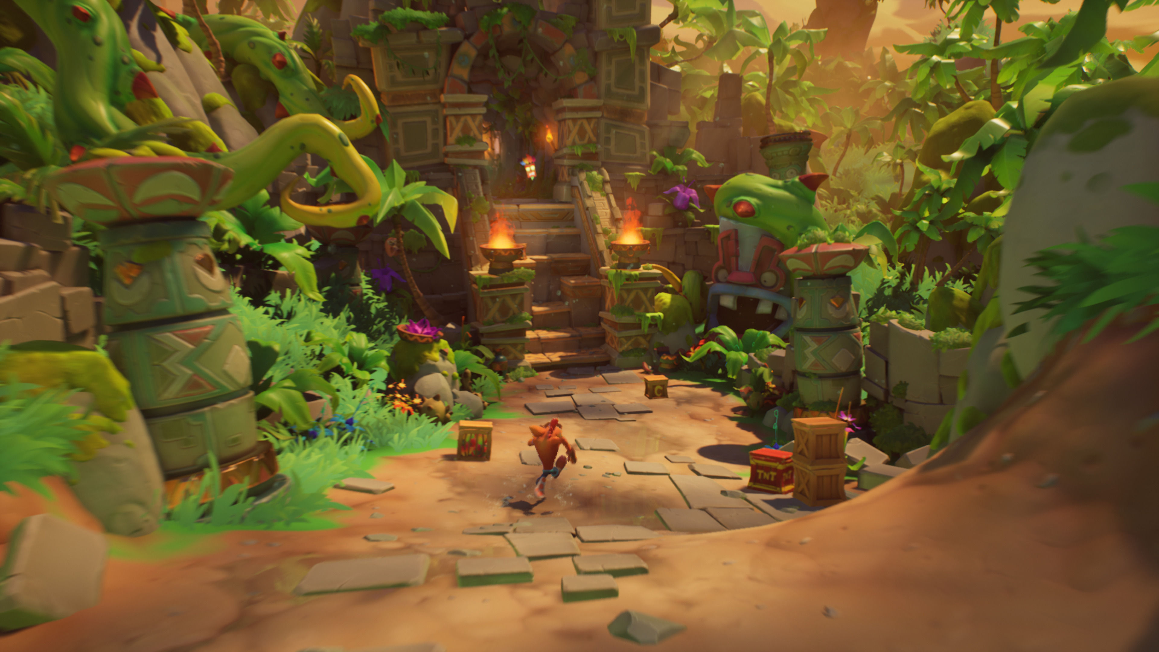 Audiovisualmente, Crash Bandicoot 4: It's About Time nos ha gustado muchísimo. Obviamente, teníamos miedo de ver un cambio artístico con el historial de la saga pero creemos que han acertado de lleno. Nos parece que respeta los diseños de la saga y, a su vez, aprovecha el hardware de las consolas actuales para ofrecernos un juego precioso y que, además, se mueve que da gusto. En PlayStation 4 Pro, donde lo hemos analizado, funciona a 60 imágenes por segundo siempre estables e, imaginamos, a 1440p.