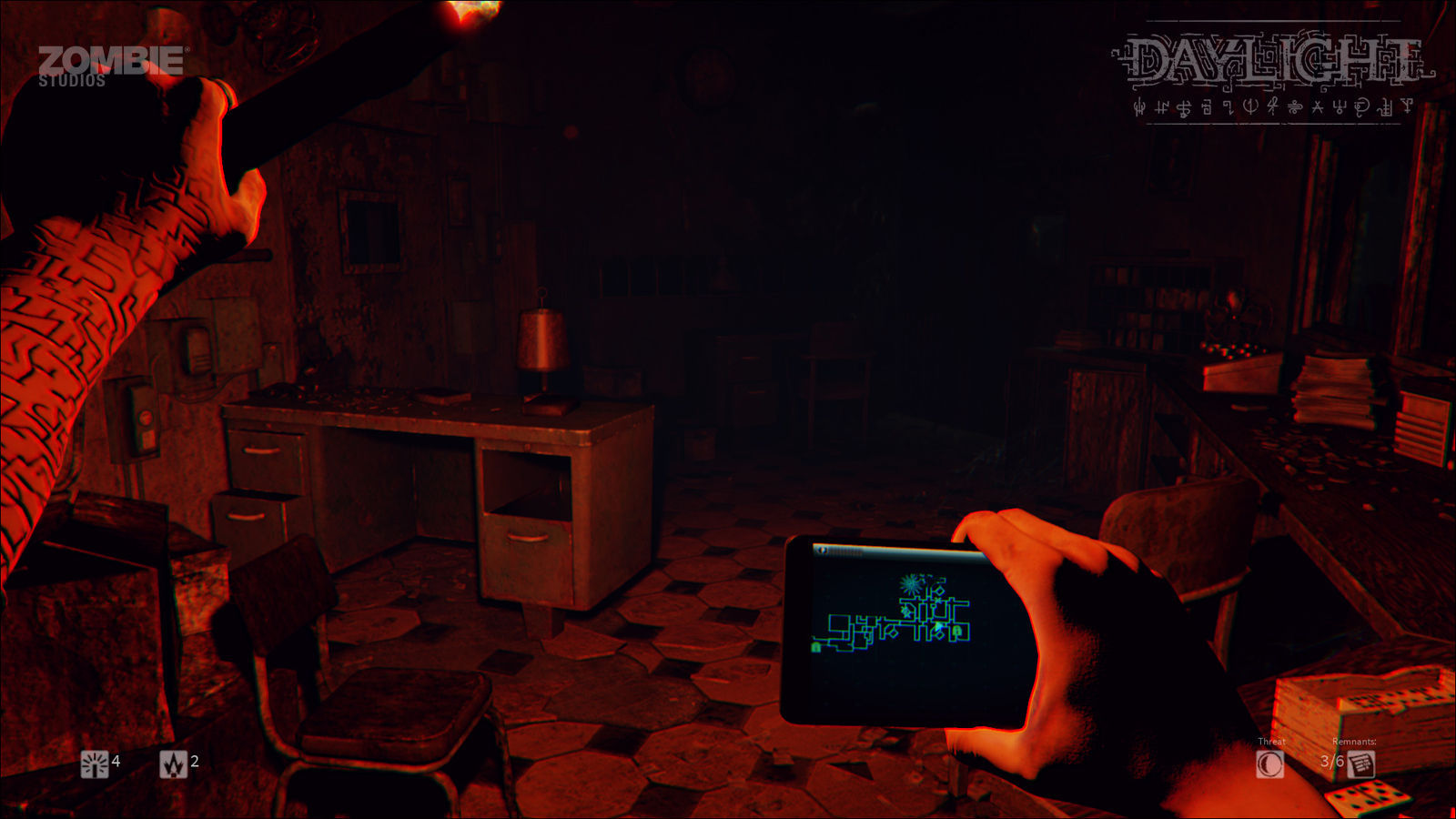 Como decimos, la principal –si no única– novedad de Daylight son sus escenarios generados al azar, y eso no es demasiado positivo. ¿Por qué? Porque realmente esto significa que todo lo demás lo hemos visto ya en multitud de ocasiones. Además, los escenarios son una mezcla de pasillos cuya distribución, sinceramente, afecta bien poco a la hora de jugar. Básicamente vamos a recorrer los mismos pasillos, con una puerta aquí y otra allá, pero que gracias al mapa nos vamos a orientar igualmente bien.