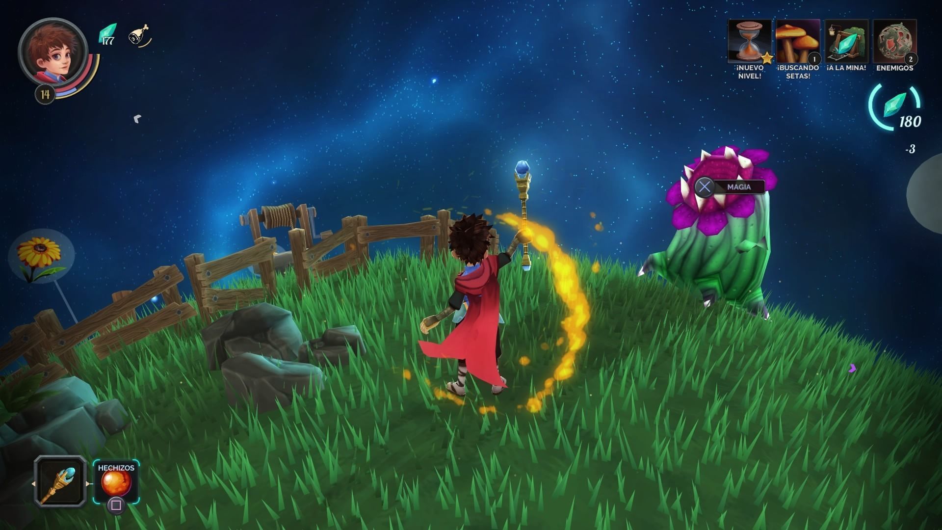 Además de recoger recursos plantando, picando y recogiendo leña hay momentos de lucha e incluso misiones específicas en las que hay que matar ciertos enemigos. Arco va subiendo de nivel y podemos potenciar su ataque físico o el mágico, aunque el combate no es precisamente un punto fuerte del juego; es cierto que es para jugadores muy jóvenes pero los enfrentamientos son muy simples y lo que más transmite sensación de peligro es la música.