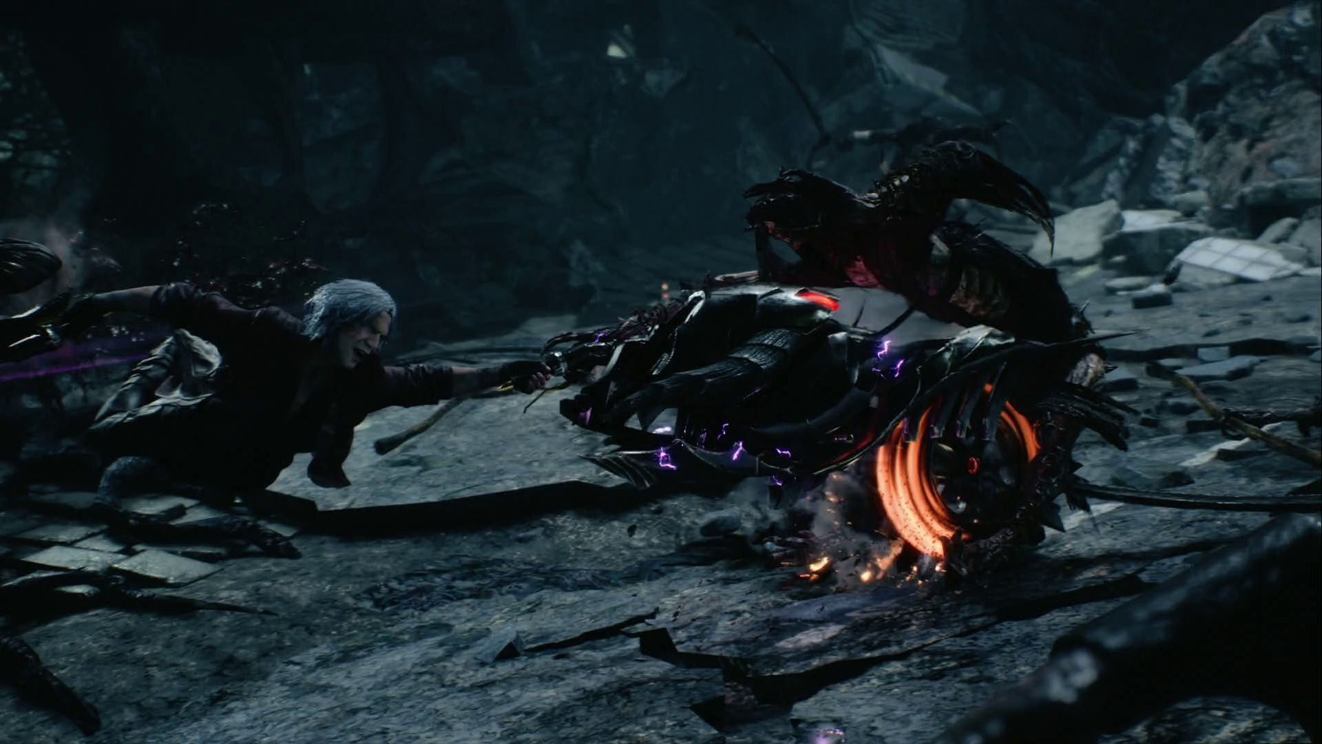 Nero y V son muy divertidos de llevar y nos lo pasaremos genial jugando con ellos, pero Dante simplemente juega en otra liga, en una abrumadoramente superior y reservada solo para incunables del género como Bayonetta.