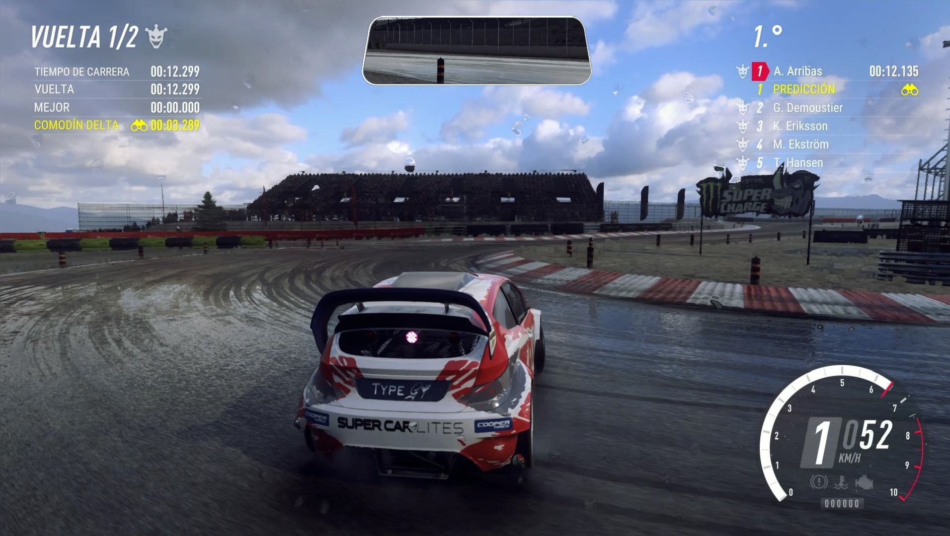 La otra opción es rallycross, un estilo de juego más divertido y frenético en el que competimos contra otros pilotos para llegar los primeros a la meta. Aquí se permiten los contactos, hay una vuelta especial y los circuitos mezclan asfalto y tierra, factores que hacen de estas competiciones una experiencia más emocionante. Además, la IA rival tiene un comportamiento agresivo y competitivo, transmitiendo fielmente la esencia de este tipo de carreras.