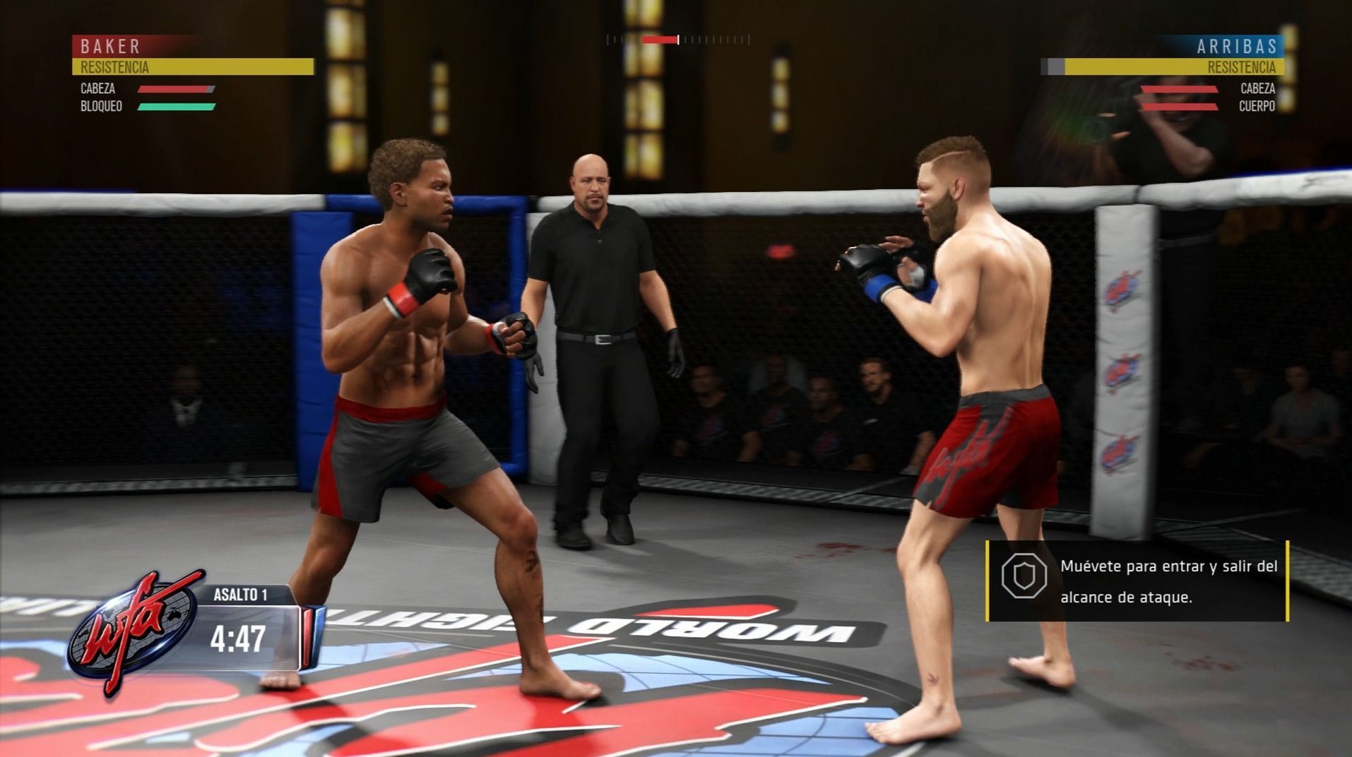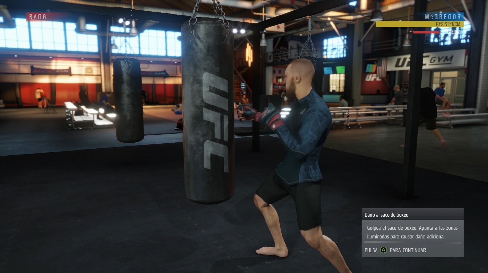 También veremos una barra verde que indicará nuestra resistencia al bloquear, ya que el aguante de nuestro luchador no será ilimitado. Lo mismo sucederá con el indicador de cansancio, un medidor imprescindible para aguantar con garantías todos los asaltos. Según vayamos golpeando o luchando en el suelo iremos agotando nuestra resistencia, reduciéndose dicha barra a medida que realicemos más acciones.
