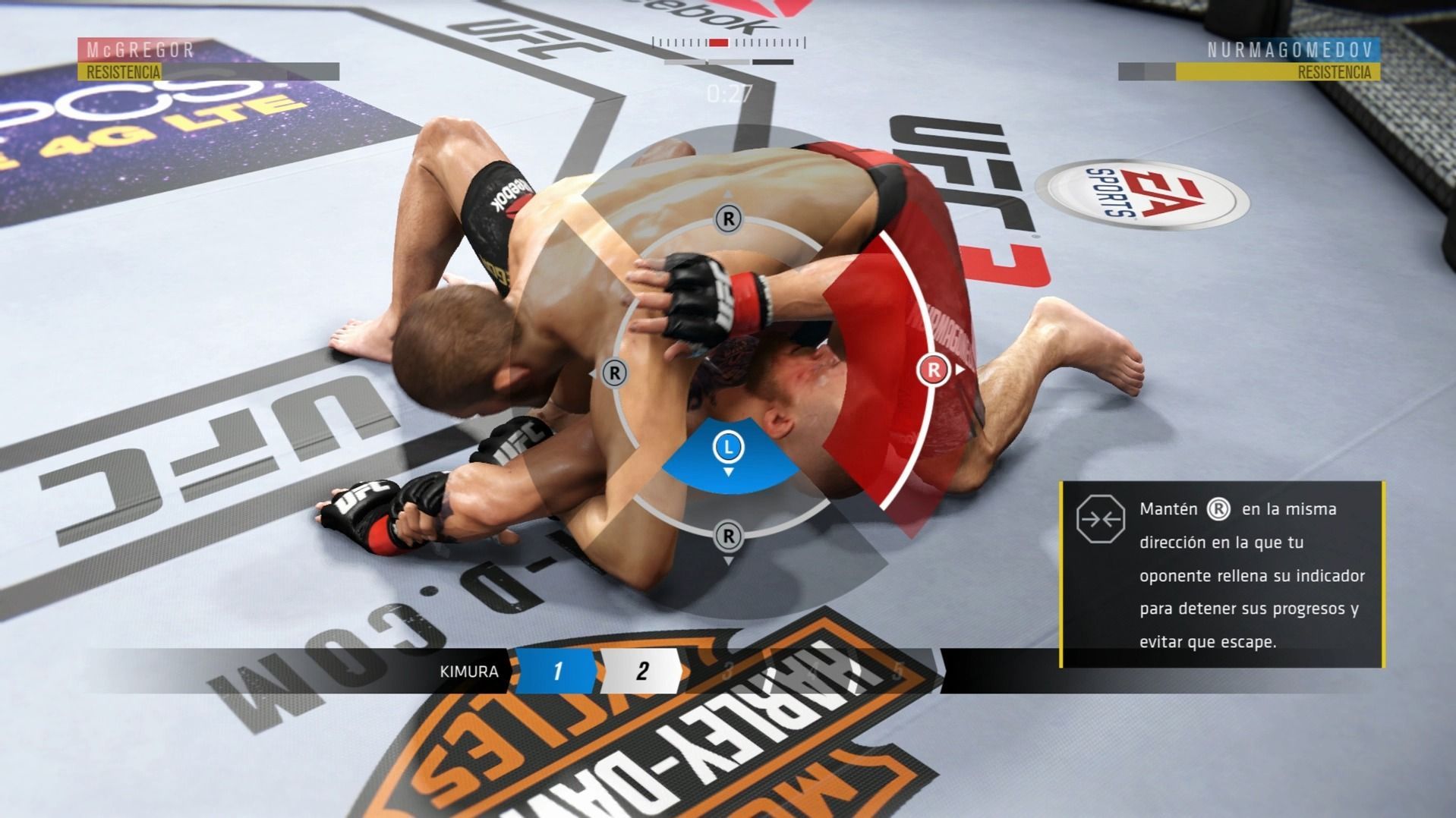 Cuando comience la sumisión tendremos que completar un minijuego compuesto por varias fases con una mecánica muy sencilla pero difícil de dominar. Sabiendo de las dificultades de este estilo de juego, UFC 3 incorpora un sistema de sumisión simplificado, teniendo que pulsar rápidamente un botón para escapar del agarre o finalizar una acción. Estos QTE ayudarán a los jugadores que no quieran complicarse, pero solo estarán disponibles en los modos offline.