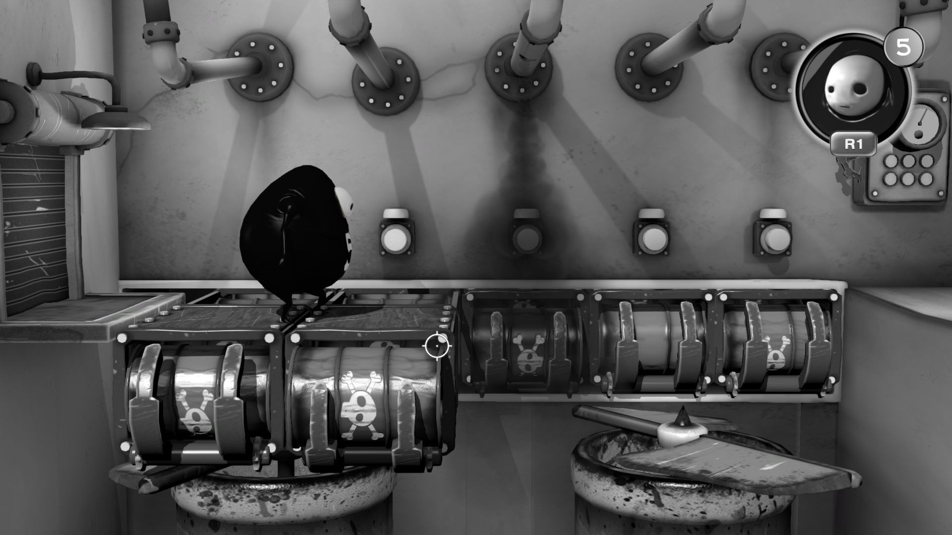 La principal diferencia que encontramos en PlayStation 4 está en la forma de interactuar con los personajes y el escenario. En Escape Plan de PS Vita enviábamos a los personajes a un lugar concreto mediante la pantalla táctil y empujamos obstáculos hacia el fondo, mientras que con el panel trasero hacíamos justo lo contrario, sacando hacia el primer plano mecanismos o compuertas que hacían las veces de plataformas. En la práctica no funcionó tan bien como se prometía, pero desde luego que era imposible de traspasar tal cual en PS4 o Vita TV –el accesorio de Vita para conectar a pantallas-. La solución empleada es utilizar un cursor en pantalla controlado con la palanca izquierda y, según el botón pulsado –X o R2- se distingue el tipo de toque. Siendo sinceros, no es el manejo más intuitivo del mundo, y aunque plantea algún problema nuevo en cuanto a comodidad y velocidad por el desplazamiento del indicador, a cambio es más preciso que en Vita –sobre todo en los puzles pensados para el panel trasero-, lo que hará que para muchos jugadores sea incluso más entretenido que el original.